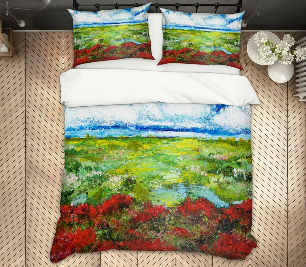 3D Red Flower Lawn A187 Bed Pillowcases Quilt Duvet Cover Allan P Zoe