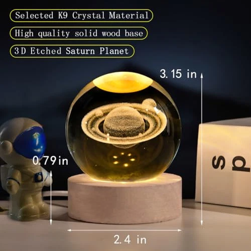 Return Policy Fast Delivery Trusted seller 3D Saturn Crystal Ball Night Light with LED Stand, Saturn Planet Sphere Space Lamp, Decorative Glass Balls, Saturn Globe Paperweight Gifts for Women Kids(60mm) Product Description 3D crystal ball - Our saturn crystal ball is made of high-quality K9 crystal and uses advanced 3D laser engraving technology, which delicately portrayed the lifelike appearance of the saturn planet. Not only is it beautiful and durable, it is an excellent choice for collecting and viewing Saturn sp lamp - Packed with LED light wooden base and USB cable(power adaptor not included), the crystal ball lights up after power connected and the switch button on the cable for easily turn on or off. Suitable to use as a crystal ball night light and add peace and warmth to your bedroom or kids room Crystal ball decoration - Measures approx. 2.5" (60mm). Whether you're looking for a centerpiece for your dining table, bedroom bedside, bookshelf, window sill or a unique paperweight for your desk, this decorative glass ball can become an amazing landscape and enhance the mystery of space Perfect Gift - For those Interested in Planet,Galaxy,Space. It can be used as a glass paperweight or an interesting 3d crystal ball gift for Teen boys and girls, Women, Kids, Friends, Astronomy Lover, Physics Teachers, Classmates, 2024 Science Astrophysics majors Graduation students,etc After Sales Service - Our crystal balls are all carefully packed and inspected before shipping to ensure quality. If you receive damaged or defective item or just don't like it, you can return it up to 30 days. Rest assured, Our commitment to excellence extends far beyond the moment of purchase Shipping Returns Payment Shipping Shipping is FREE to all addresses other than APO/PO boxes in the lower 48 states. All our stock ships from US-based warehouses. Shipped via USPS or UPS (depending on location and package weight) Unless stated otherwise, all orders will ship within 24-72 hours of your payment being processed. Check our feedback to see the great reviews of FAST shipping we offer. Returns Seller does not accept returns Payment We currently accept payment via eBay managed payments only. Once payment is cleared, we will dispatch your shipment within 1-3 business days. Please refer to the "Shipping" tab for more information regarding shipping speed to your destination.
