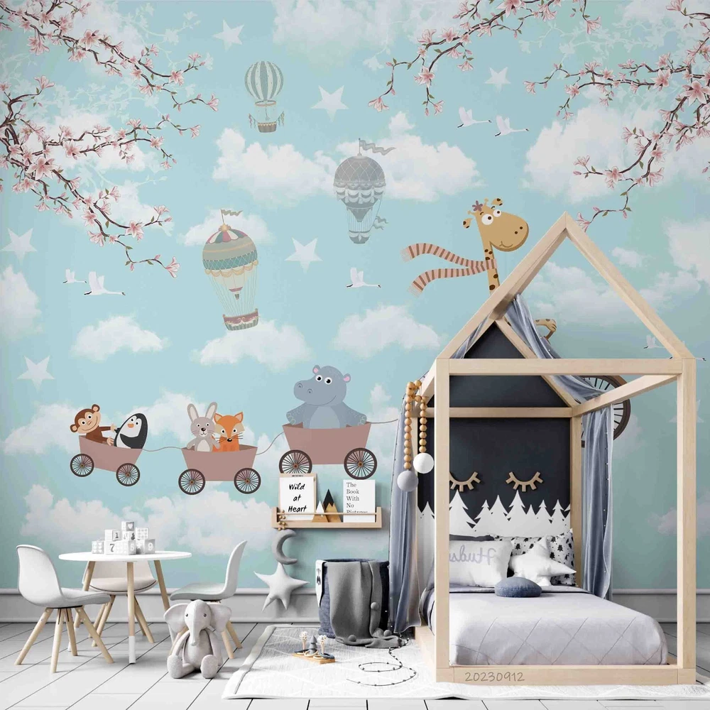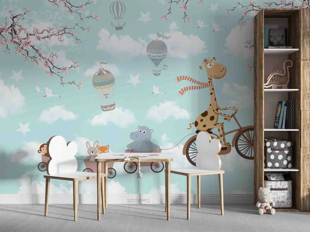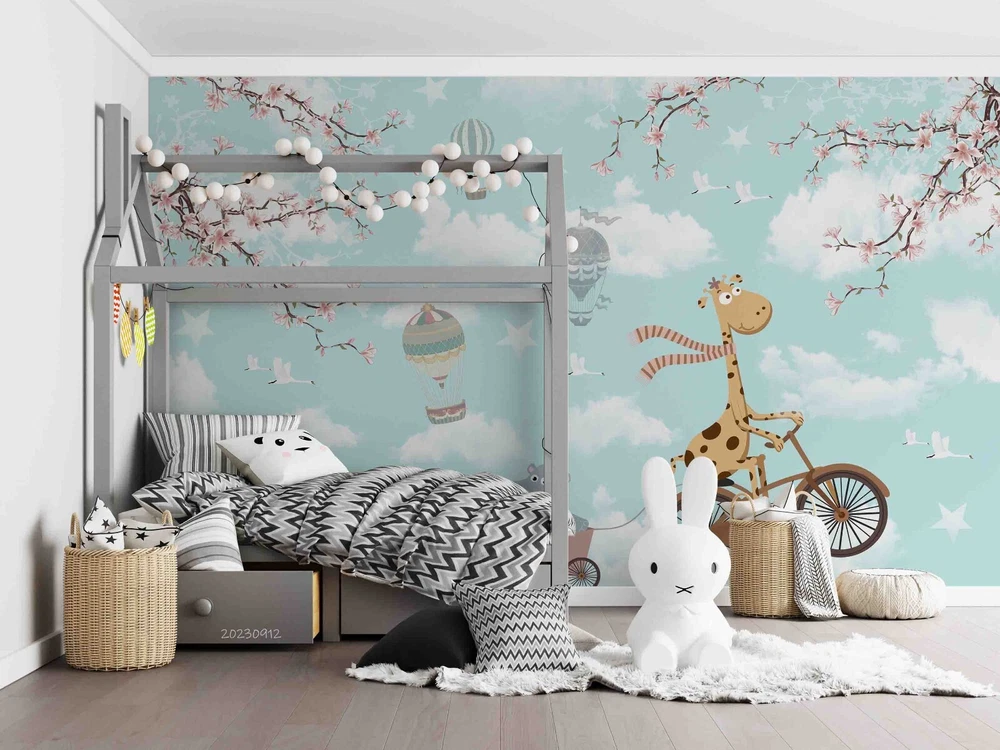 3D Sky Cloud Animal Giraffe Floral Wall Murals Wallpaper Murals Wall Sticker