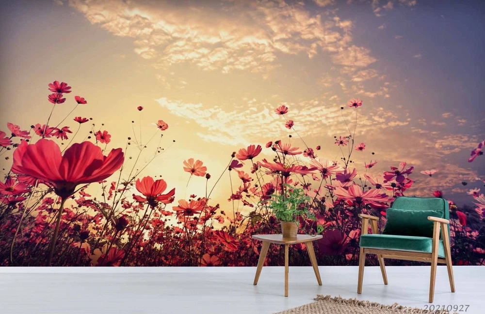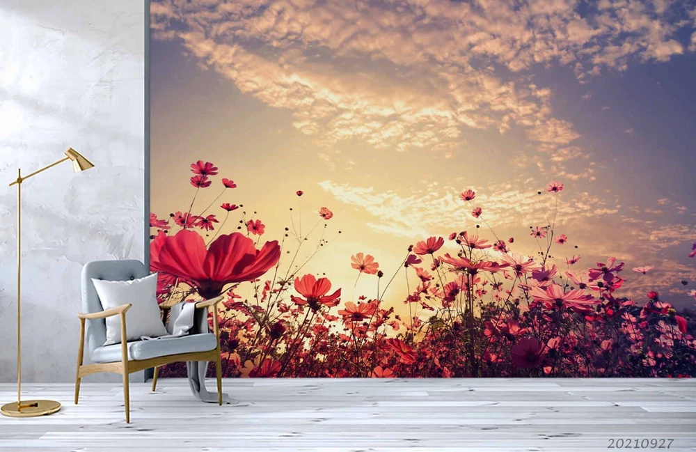 3D Sky Cloud Red Floral Wall Murals Wallpaper Murals Wall Sticker 57