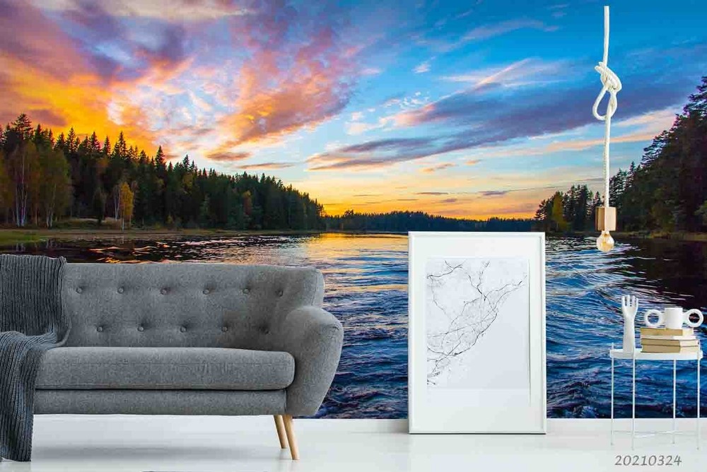 3D Sky Forest Sunset Landscape Wall Murals Wallpaper Murals Wall Sticker