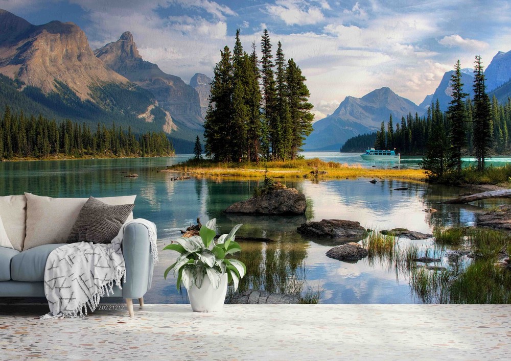 3D Sky Mountains Lake Forest Wall Murals Wallpaper Murals Wall Sticker