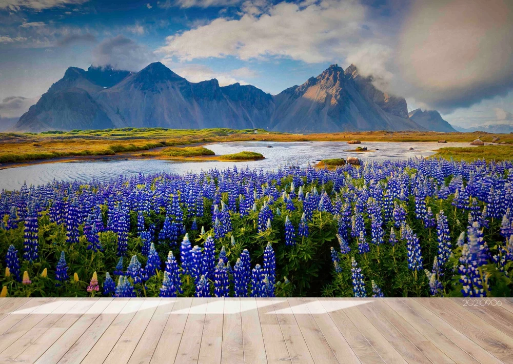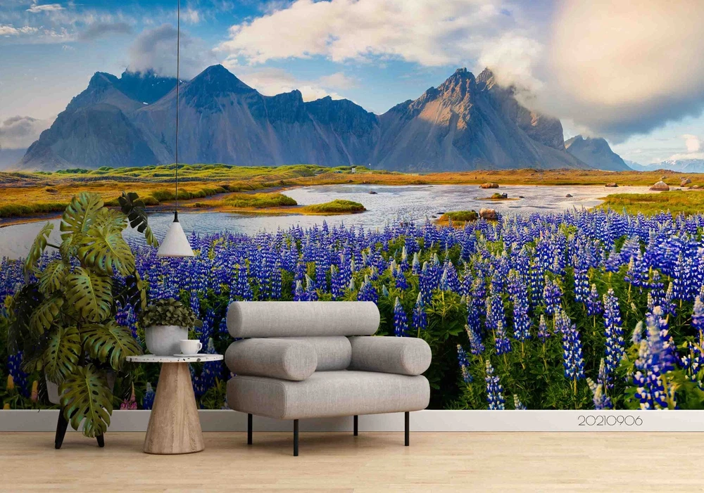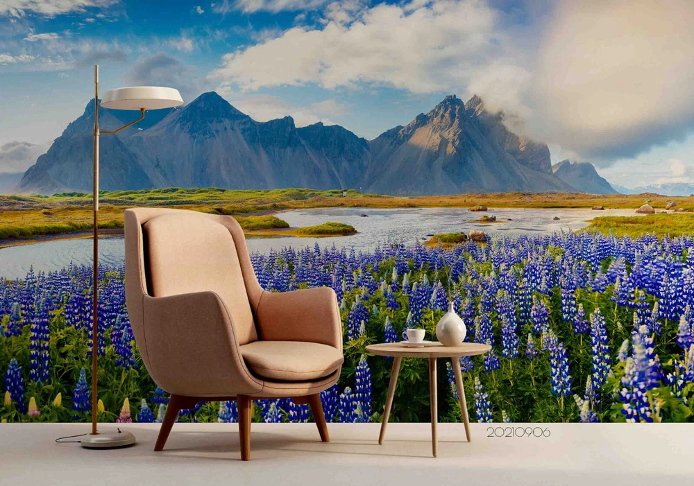 3D Sky Mountains River Floral Wall Murals Wallpaper Murals Wall Sticker