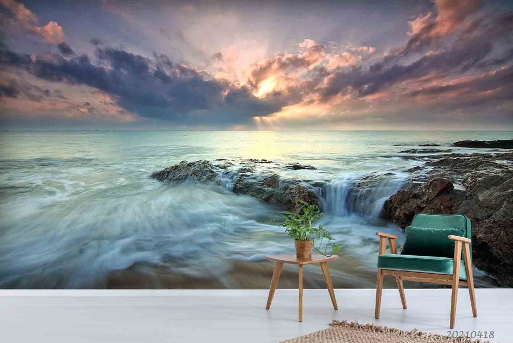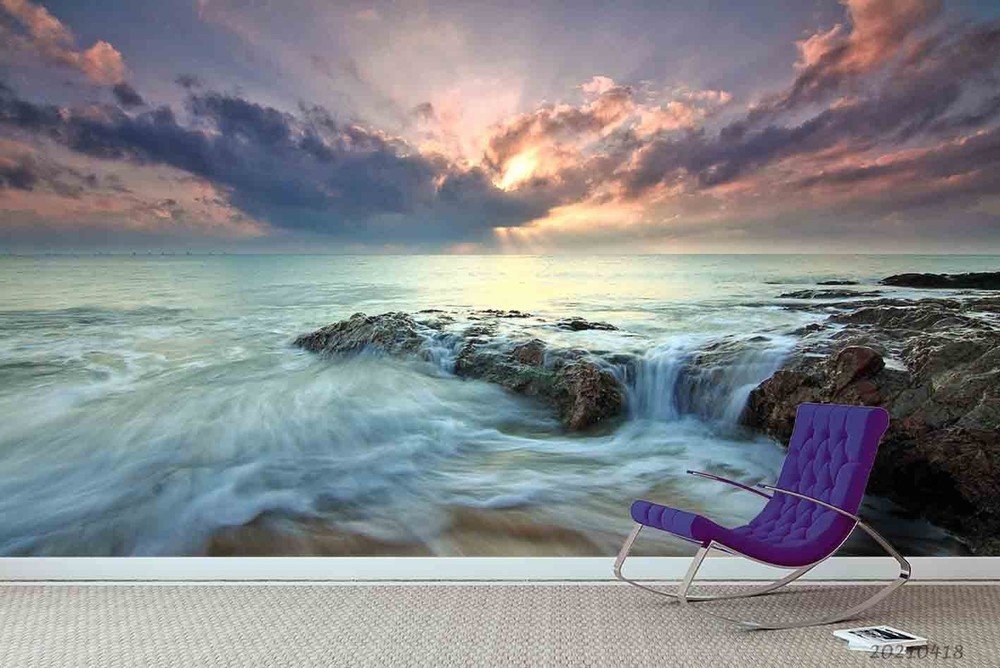 3D Sky Sea Beach Sunset Landscape Wall Murals Wallpaper Murals Wall Sticker