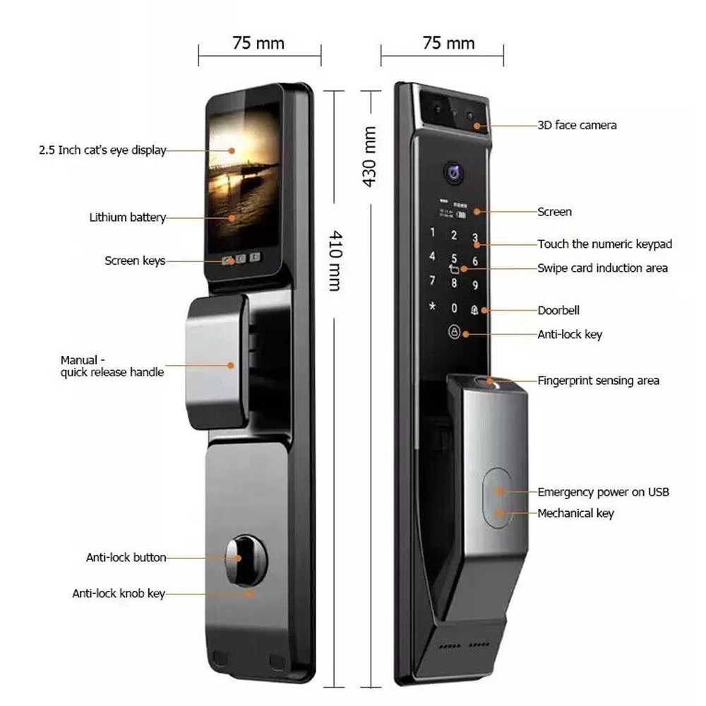 Kids Smart Watch GPS Tracker SOS Call Camera Phone Watches For Boys Girls Safe 16.49 USD Free shipping German Nail Clipper,Ultra Sharp Stainless Steel Nail Clippers for Men Women US 11.69 USD 12.99 USD Free shipping 10% off Car Under LED Strip RGB DIY LED Strip Underbody System Neon Light Kit &Remote US 19.8 USD 22.0 USD Free shipping 10% off Wireless Headphones Bluetooth Noise Cancelling Stereo Earphones Over Ear Headset 17.09 USD 18.99 USD Free shipping 10% off Wireless WiFi Smart Video Doorbell Phone Door Ring Intercom Security Camera Bell 32.0 USD Free shipping Professional German Nail Clippers for Thick Nails, Stainless Steel Nail Clippers 11.69 USD 12.99 USD Free shipping 10% off Products Description 1. High strength aluminium alloy material, corrosion resistance. 2.4200mAh lithium battery power supply, reusable charging,environmental protection. Normal continuous use for 6 months 3.100 fingerprints, password, IC card can be input. 4. After closing the door, the latch will pop out and lock automatically. 5. The door can be opened with key in any condition. 6. Even if the power is off, the fingerprint, password and IC card data will not be lost 7. The alarm will sound automatically when the power is low, and the alarm will also be given if theunlocking is unsuccessful for many times. 8. If battery is power off, there is USB port as emergency charge. Special Features : 3D Face Recognition, Built-in Camera, Built-in Doorbell, Built-in Screen, NIGHT VISION, Tamper Alarm, Two-way Audio,WIFI, usmart go app Unlock way : APP +Fingerprint + Password + Card + Key+Face Material :Aluminum alloy Mortise : 6068/240*24mm Color :Black Power supply :7.4V Lithium-ion Rechargeable Batteris Weight(kgs) : 5.5Kg Size : 75*430mm Door thickness : 40mm - 120mm Work Temperature : -20-7 Please Note: Communication is the best way to solve the problem.Your satisfaction is our top priority. We appreciate your positive feedback! We have always been committed to providing the best service and reliable products to every customer. However, accidents may occur at times, and we understand your concerns and setbacks. Please contact us to resolve the issue before leaving negative feedback. You may also like 2 Point Sling QD Swivel Rifle Tactical Gun Sling Strap M-LOK MLOK Swivel Mount 8.99 USD Free shipping 64mm Brushless Motor high power Handheld Violent Turbo Jet fan Portable Blower 127.99 USD Free shipping Smart Wireless WiFi Ring Doorbell Phone Door Ring Intercom Security Camera Bell 32.98 USD Free shipping Type-C Wireless Soldering Iron Kit Portable Rechargeable Electric Soldering Iron 36.99 USD Free shipping COB LED Headlamp USB Rechargeable Headlight Torch Work Light Bar Head Band Lamp 16.99 USD Free shipping Electric Laser Plasma Pen Mole Removal 6-level Dark Spot Remover Skin Wart Tag 19.99 USD Free shipping