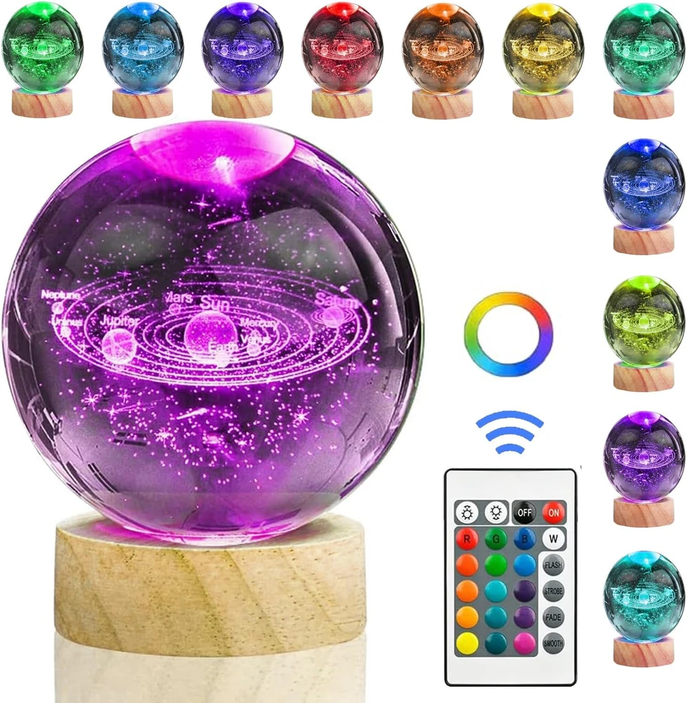 Store New Arrivals Add to Favorite View Feedback Contact 3D Solar System Crystal Ball Lamp,3.2In Crystal Ball Night Light Engraved Astronomy Decor,Galaxy Planets Glass Ball Lamps with Woodern Base,16 Colors Remote Control Gift for Kids,Friends,Loves Description Item model number SJD-01 Light Source Type LED Style Art Deco Number of Items 1 Power Source Battery Powered Number of Light Sources 1 Country of Origin China Batteries Included? Yes Lighting Method LED Lamp Type LED Cartoon Character 3D Solar System Number of Pieces 1 Room Type bedroom,living room,children's room,study,hallway,officeor,any style of space Bulb Shape Size B10 Product Dimensions 3.2"D x 3.2"W x 3.2"H Material Glass Batteries 2 CR2 batteries required. (included) Installation Type Tabletop Controller Type Remote Control Specific Uses For Product Indoor use only Indoor/Outdoor Usage Indoor Control Method Remote Water Resistance Level Waterproof Batteries Required? Yes Item Weight 0.65 Kilograms Connectivity Technology USB Special Features 16 colors and Flash, strobe, fade and smooth four modes Multiple Lighting Modes,Wooden Base with USB Cable Line Special Feature 16 colors and Flash, strobe, fade and smooth four modes Multiple Lighting Modes,Wooden Base with USB Cable Line Shade Height 3.2 Inches Part Number SJD-01 Shade Color Multicolor Mounting Type Tabletop Color Solar System Wattage 2 watts Is Cordless? No Base Material Wood Is Waterproof true Shape sphere Voltage 5 Volts (DC) Recommended Uses For Product Decoration Shade Material Glass, Wood Included Components Remote Control, Battery Base Diameter 3.2 Inches Switch Type Remote 🔮【3D Solar System Crystal Ball Night Lights】3.2 Inch Large Crystal Ball Made Of Premium Glass Crystal,Interior Images Are Carved By Model Engraved with the Advanced 3D Laser Engraving Technology are Clear,Distinct and Stereoscopic,the Crystal Ball will not Fade Forever.It a great gift for Anyone Interested In Space And Astronomy.Solar System Crystal Ball is a perfect gift to give your wife,girlfriends,friends,family,Kids,Teens,Astronomy Enthusiasts, Physics Enthusiasts,Space Model Collectors. 🔮【Unique Perfect Gift】The inside of the crystal clear ball is engraved with exquisite and clear 3D pattern,under the illumination of soft light,it creates a warm and dreamy atmosphere, bringing a romantic artistic sense to your home.Suitable for bedroom,living room,children's room,study,hallway,any style of space.The gift for Valentines Day,Mothers Day,Wedding,Anniversary,Thanksgiving Day,Christmas,Graduation, Halloween Day.It is both A Bedside Night Lamps and a very beautiful Decoration Lamp. 🔮【Multiple Lighting Modes】: These 3D Crystal Ball Lamp have 16 colors and 4 modes. You can use the remote control to choose the color of your favorite lights and adjust the intensity of the lights. Flash, strobe, fade and smooth four modes,can also always light a color, soft and not glare, protect your eyes. You can easily control this night light even when you are lying in bed.Please be close to the remote control when using it. The adjustment range of the remote control is 2M (80inch). 🔮【Dreams From The Universe】Like love, the universe gives people a feeling of vastness and mystery, while also representing charm and longing.We like to use it to symbolize good wishes, such as eternity, harmony, peace, and lofty ideals and aspirations.So the 3D Solar System Space Gifts Crystal Ball Night Light we designed are also seen as gifts that symbolize love,health and Strong and long-lasting career, representing blessings and wishs. 🎁【USB Work】:The diameter of the 3D Night Light Crystal Lamp is 3.2 in.The weight is about 1.65lb.The crystal ball can be stably placed on the wooden base.Comes with Wooden Base with USB Cable Line(no Adapter),Connect to such as Computers,Portable Charger,Output Charger/Adapter,etc.Long life and Power saving: About 2W/H,can be used for many years.We strive to offer our customer the best product and after sale service.Any problem please feel free to .We will make customers satisfied! Product Description 3D Solar System Crystal Sphere Night Lights Dimmable Crystal Space Night Light Adjustable Color Light With Wooden Base. 16 Color Adjustable Color Night Light Solar System Gift Soft LED Lighting Adjust Brightness Please be close to the remote control when using it. The adjustment range of the remote control is 2M (7 FT). Create A Safe And Pleasant Atmosphere Soft Diffused light brightness design make it a perfect night decor for bedroom, study room, bedside table, baby room.night light emits a warm and soothing light,Will Not Hurt Your Eyes In The Dark. You Can Enjoy These Scenes In a Peaceful Mind. Makes it easier to fall asleep. USB Lighting adjustment Wooden Base The base is safe and firm, and can be used with computers, charging treasures and chargers, and is suitable for various USB power outlets. USB safe voltage allows you to better decorate every location in the room! Remote Control Adjustment The remote controller can adjust any lighting color you like. There must be one color you like when you choose 16 colors. The remote controller can easily control the change of lighting brightness in bed, which is more convenient. Suitable for decoration in various positions of the room. Best Gift To Show Your Love And Care.Best Gift To Show Your Love And Care. ABOUT US We offer the best prices around on high quality products. Our E-store includes media such as books, movies, music and games while offering electronics, toys, sporting apparel, clothing, tools, general home, garden items and more. SHIPPING We are always working hard to ensure your package arrives as soon as possible. Please understand that some factors like weather, high postal traffic, and the performance of shipping companies are outside of our control. We offer free shipping to the lower 48 states and ship within 2 business days of payment, usually sooner. We do not accept P.O. Boxes. Please provid