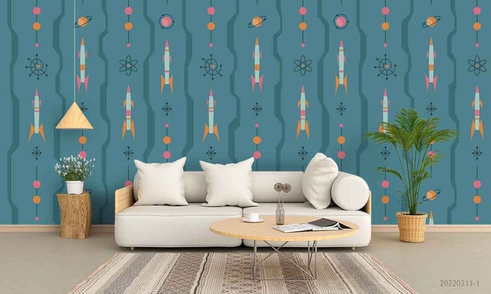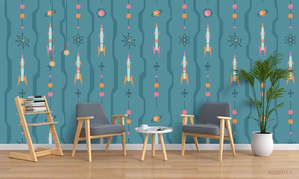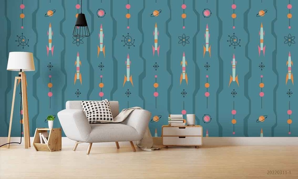 3D Space Rocket Planet Stars Pattern Wall Murals Wallpaper Murals Wall Sticker