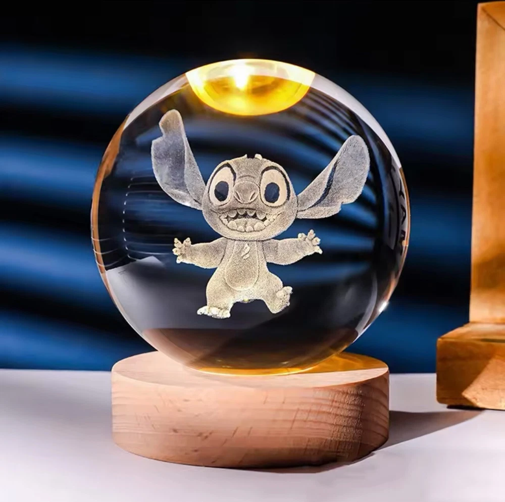 3D Stitch Crystal Ball (4 Variants) Night Light with Wooden Base Gift