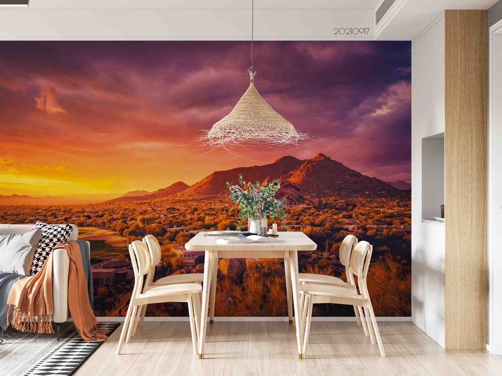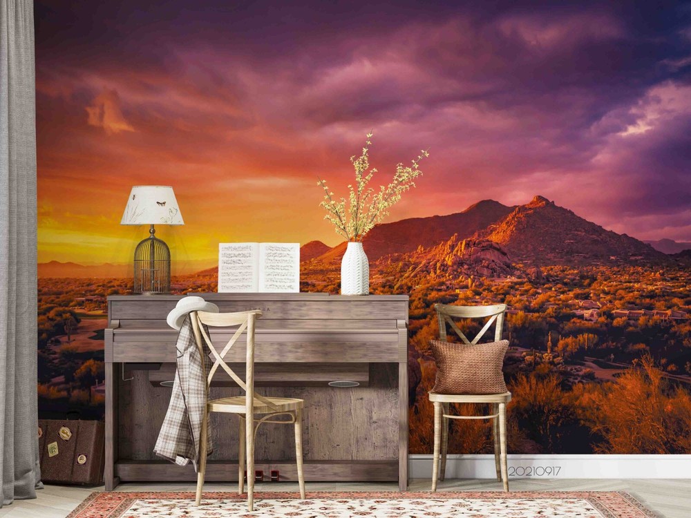 3D Sunset Sky Mountains Scenery Wall Murals Wallpaper Murals Wall Sticker