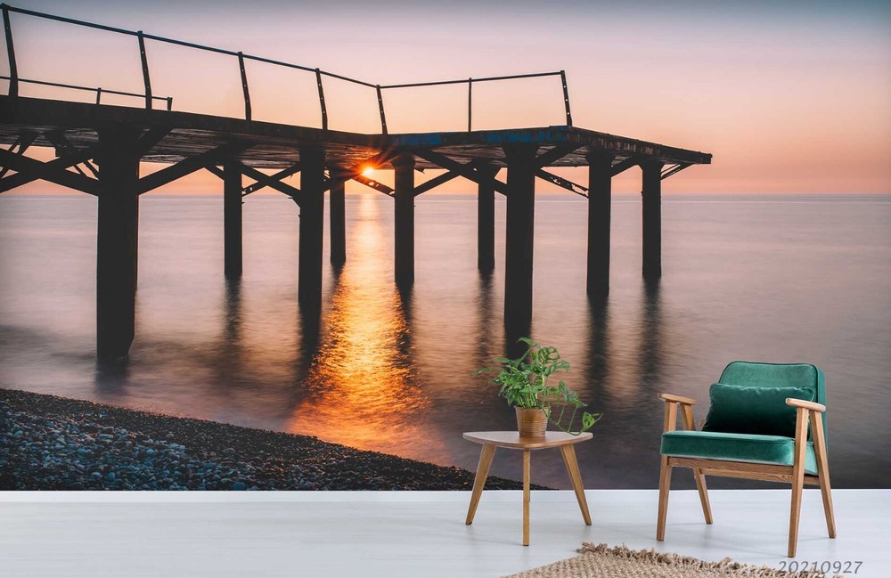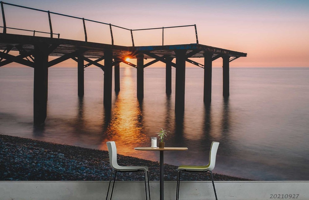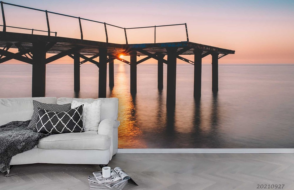 3D Sunset Sky Sea Pier Scenery Wall Murals Wallpaper Murals Wall Sticker