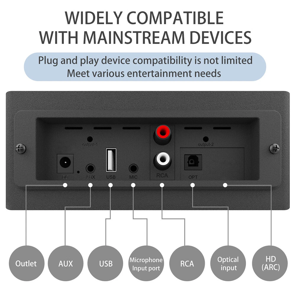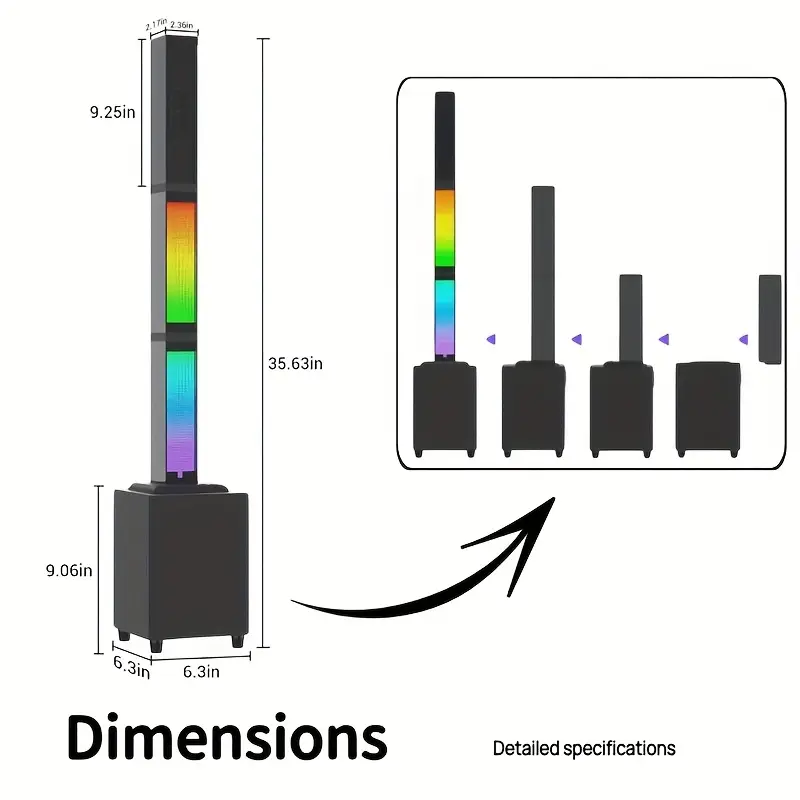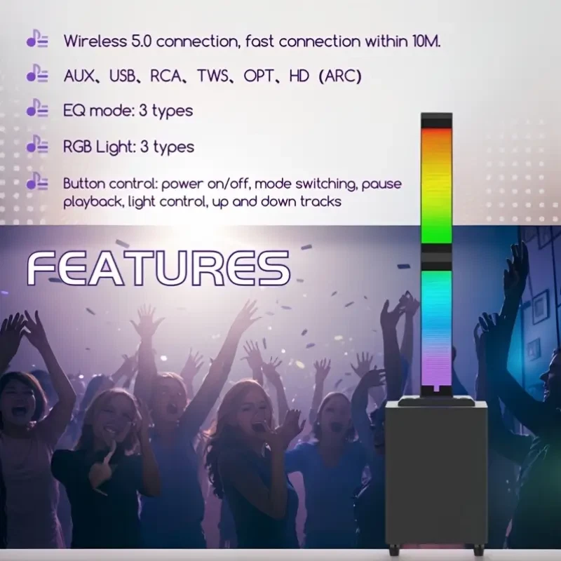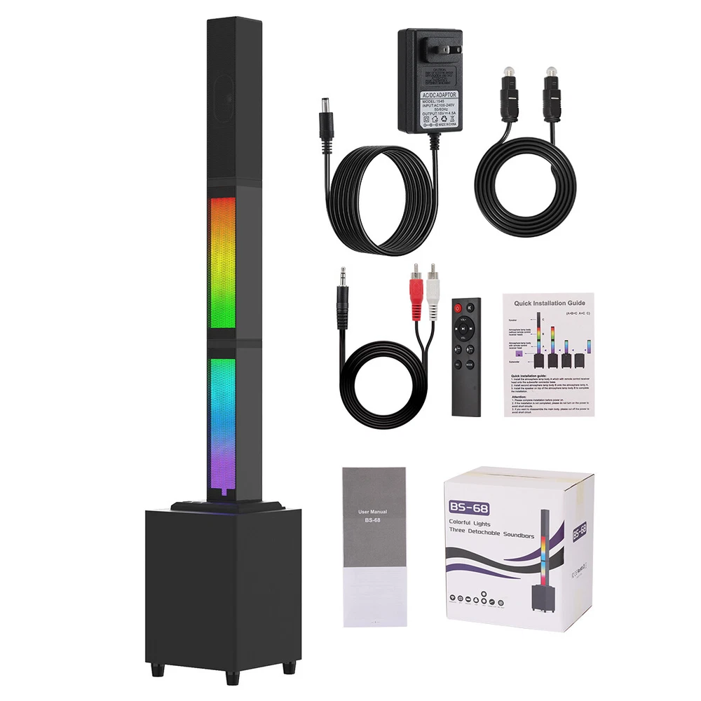 Surround 3D Sound Wireless Speaker subwoofer Home Theater RGB detachable Remote Feature: ✔ 【 Modular Design 】 Freely assemble the subwoofer + dual ambient lights + speakers to create a personalized audio system (height adjustable to 90.5cm) ✔ 【 Professional-grade Sound Quality 】 30W deep bass +15W stereo, 20Hz-20KHz frequency response, 100dB high signal-to-noise ratio, comparable to thousand-yuan audio equipment ✔ 【 Colorful RGB Lighting 】 3 lighting modes +3 EQ modes, changing to the rhythm of the music (can be disassembled separately for use as an ambient light) ✔ 【 All-scenario Connection 】 Bluetooth 5.0/AUX/USB/RCA/ Optical Fiber /HDMI ARC/ Microphone input /TWS dual-device pairing ✔ 【 High-end Material 】 The wooden box reduces resonance, with a black matte texture, making it suitable for modern homes, game rooms, and home theaters Specification: Power: Subwoofer 30W + stereo 15W×3 Bluetooth: Version 5.0 (Stable transmission < 10 meters) Waterproof: IPX4 splash-proof (suitable for bathrooms/outdoor balconies) Supports direct reading from a USB flash drive and karaoke with a microphone (a microphone needs to be purchased separately) Accessories: Including optical fiber cable /RCA cable/remote control/US standard power supply 🎛️ Intelligent control: One-click mode switching on the remote control (CR2032 battery pre-installed) Top touch buttons: Light/Play/Volume adjustment Package Included: 1 x main subwoofer 1 x Ambient light A 1 x Ambient light B 1 x speaker C 1 x English Instruction Manual 1 x Installation Guidance card 1 x optical fiber connection cable 1 x Remote Control 1 x RCA connection line 1 x American standard adapter ⚠️ Installation notes: Assemble strictly in accordance with the steps (first install Lamp A → Lamp B → speaker) Power on after assembly is completed to avoid the risk of short circuit Payment Shipping Return Feedback Question Payment We accept payment via Paypal ONLY. Immediate payment is required & Shipping will be arranged only your payment is cleared. Shipping Same business day dispatch if paid by 4 pm EST(1 pm PDT). No shipping on weekend or Public Holidays & No responsibility for any customs duty. Return We stand behind our products. Items can be returned for exchange or full refund within 60 days from the date you receive your item. Return shipping is the responsibility of buyer unless the return is a result of our mistake (i.e., your receive the wrong item or damaged item). We will pay for shipping replacement back to you if an exchange is requested. If you want to initiate a return, simply clicks "Return this item" next to the transaction in My eBay, chooses a reason, and prints a return shipping label and packing slip. We’re automatically notified. Feedback Please leave us a FIVE star and POSITIVE feedback if you are satisfied with our product and service. Neutral or negative feedback will not solve problems happily. We believe communication will fix problems and hope every customer can have a good purchasing experience. Question All ebay message will be responded within 1 business day or less, except weekends and holiday!