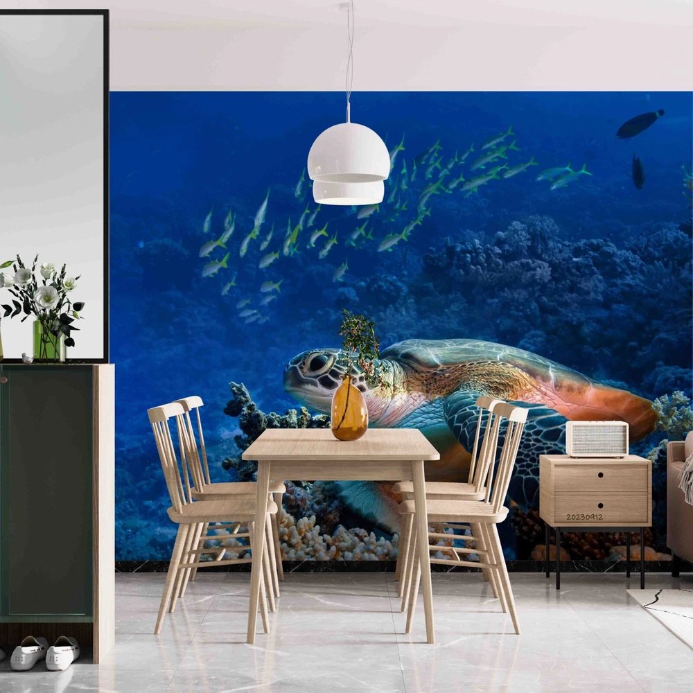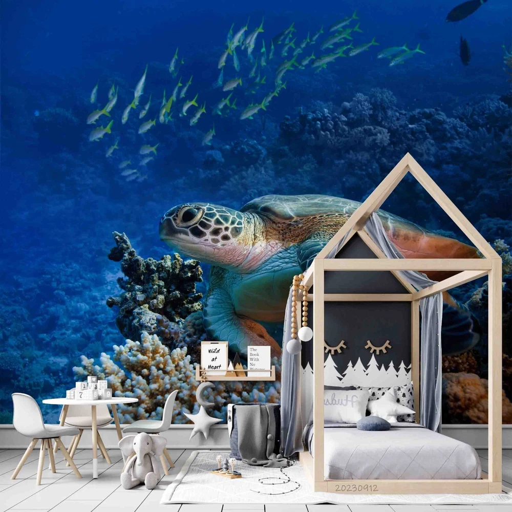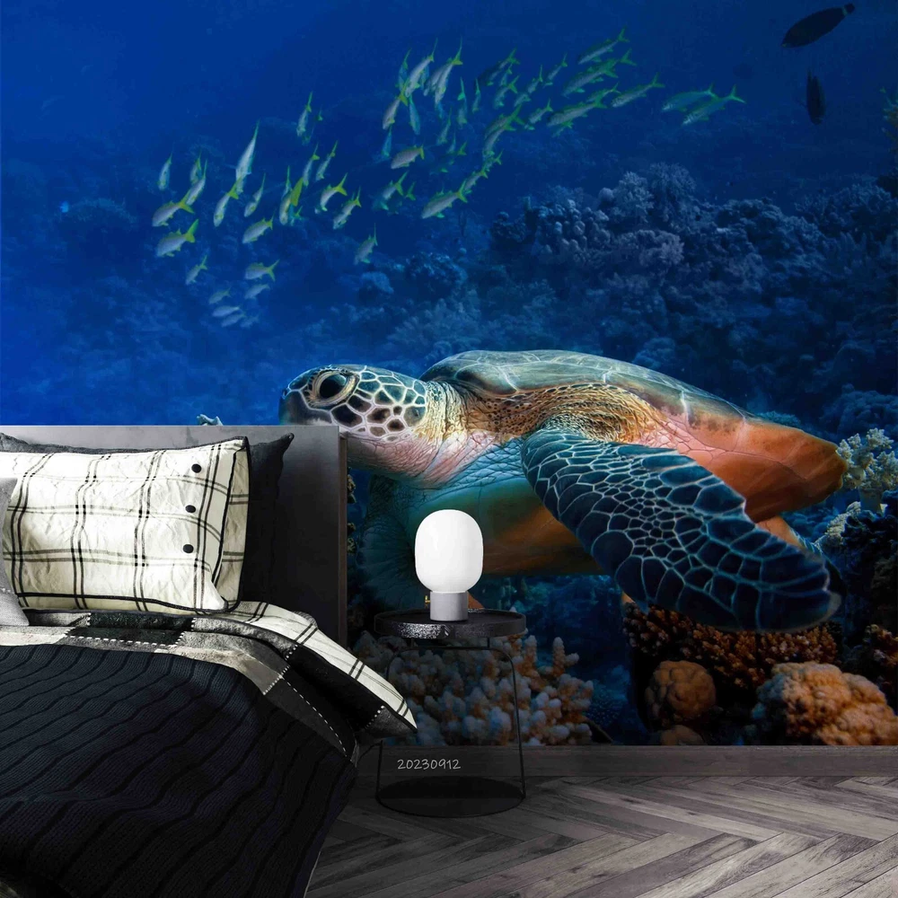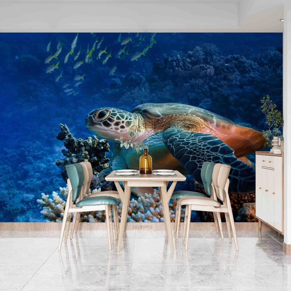 3D Underwater World Coral Sea Turtle Wall Murals Wallpaper Murals Wall Sticker