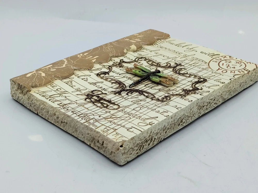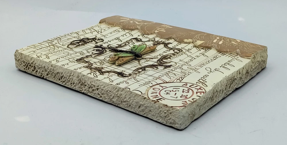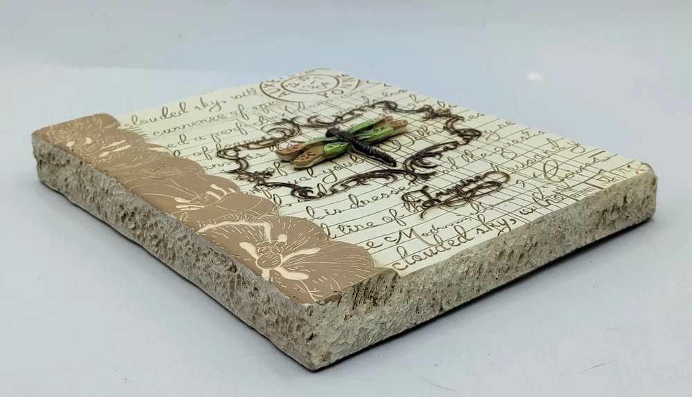 3D Wall Plaque DRAGONFLY INSPIRE New View Gifts and Accessories Dimensional wall plaque featuring a Dragonfly and old world writing Measures 8" x 8" x approximately 3/4" thick. Weighs 14 oz. Made of a composite resin material, light weight at 14 oz. Overall excellent condition, clean, no damage if you have any questions, please message me Thanks for viewing!