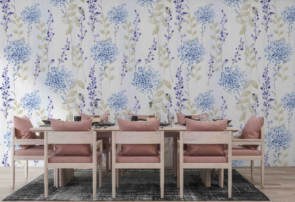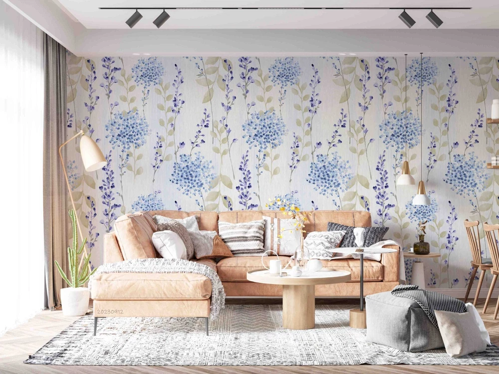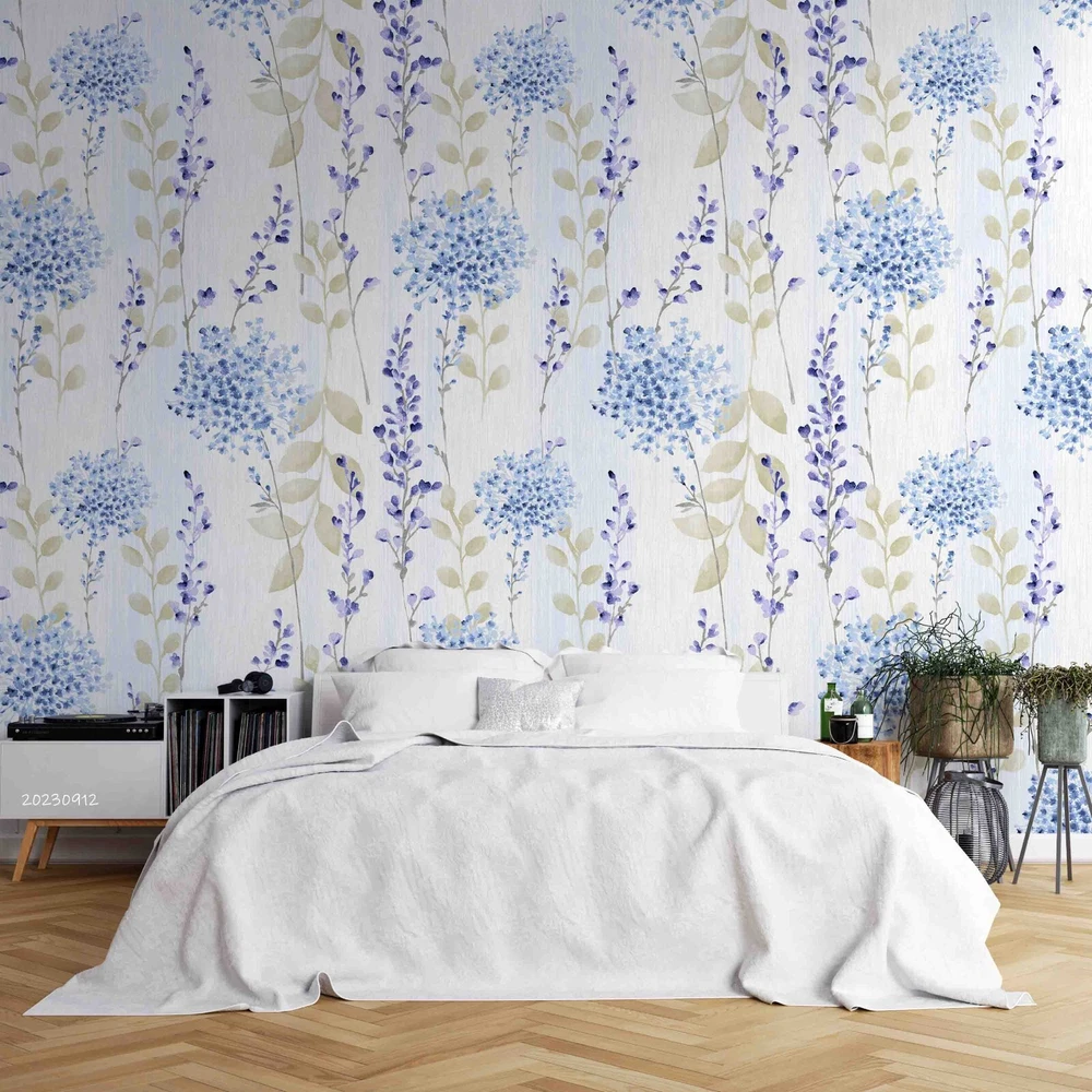 3D Watercolor Blue Floral Leaf Wall Murals Wallpaper Murals Wall Sticker