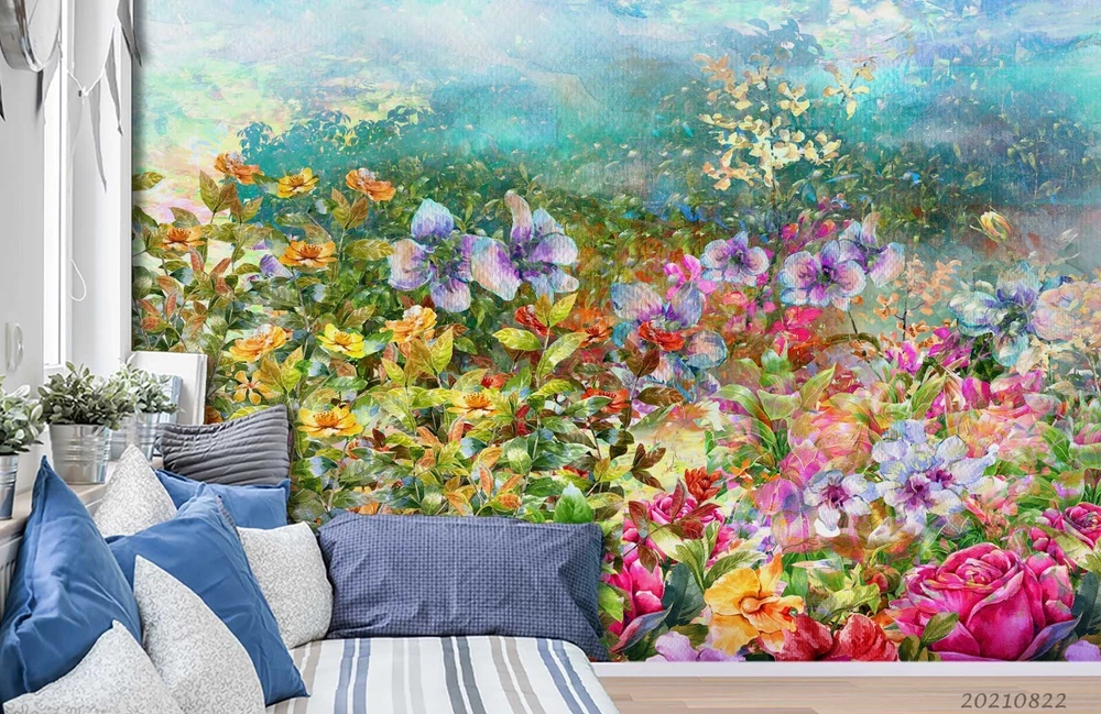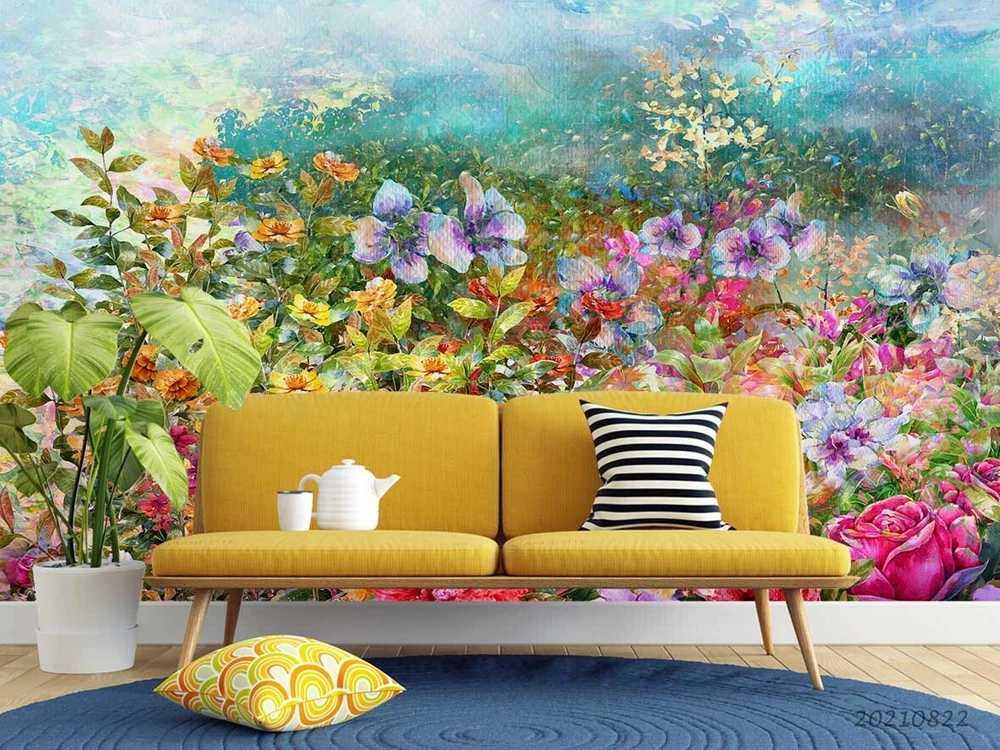 3D Watercolor Colorful Floral Leaves Wall Murals Wallpaper Murals Wall Sticker