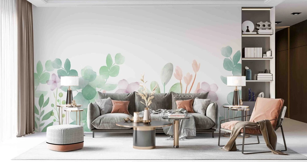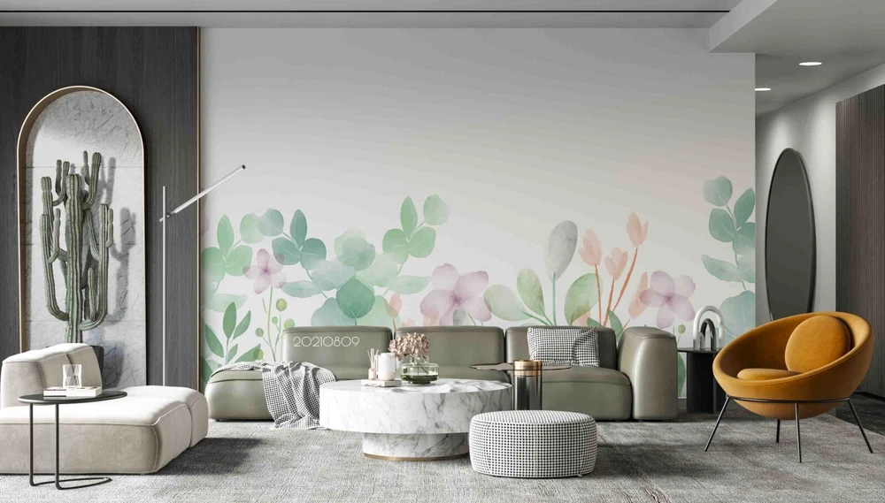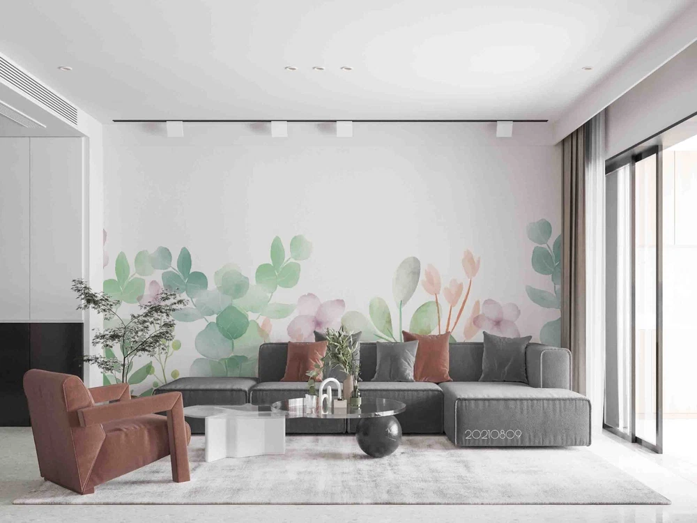 3D Watercolor Leaves Floral Wall Murals Wallpaper Murals Wall Sticker 91