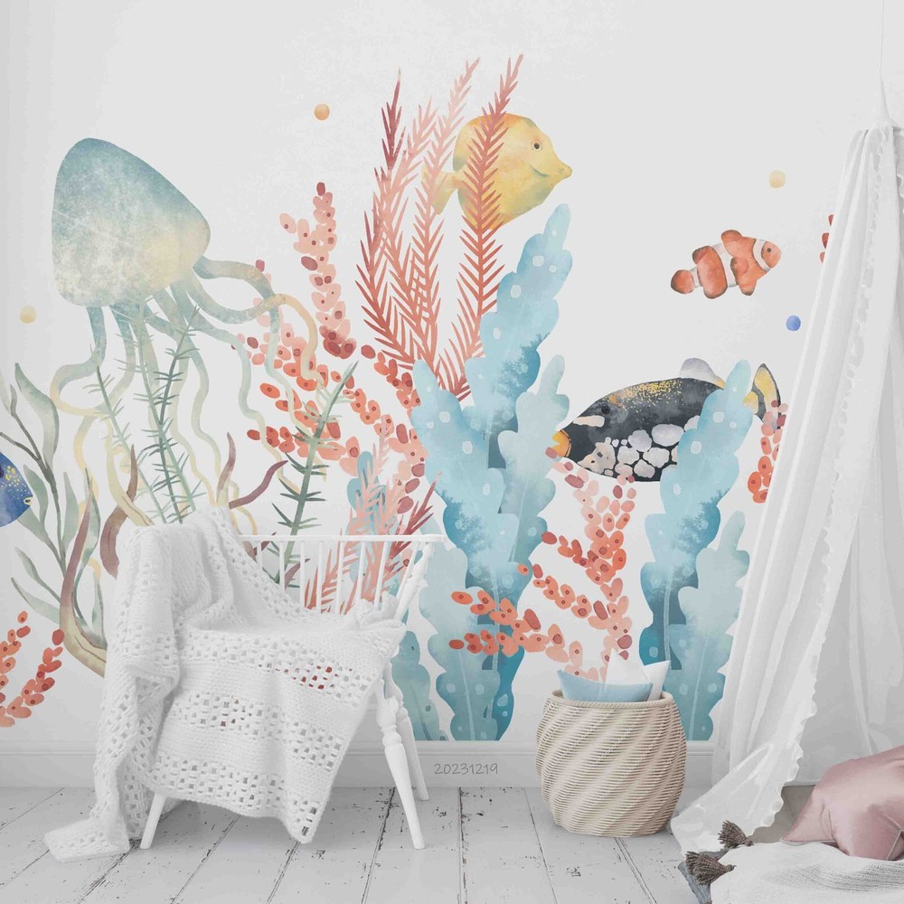 $ 14.23D Coral Starfish Shell Pattern Wall Murals Wallpaper Murals Wall Sticker
