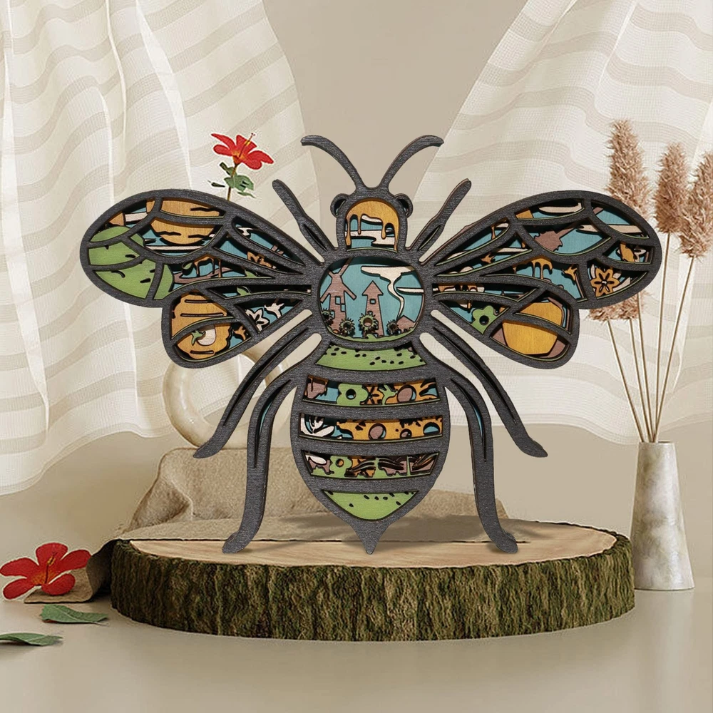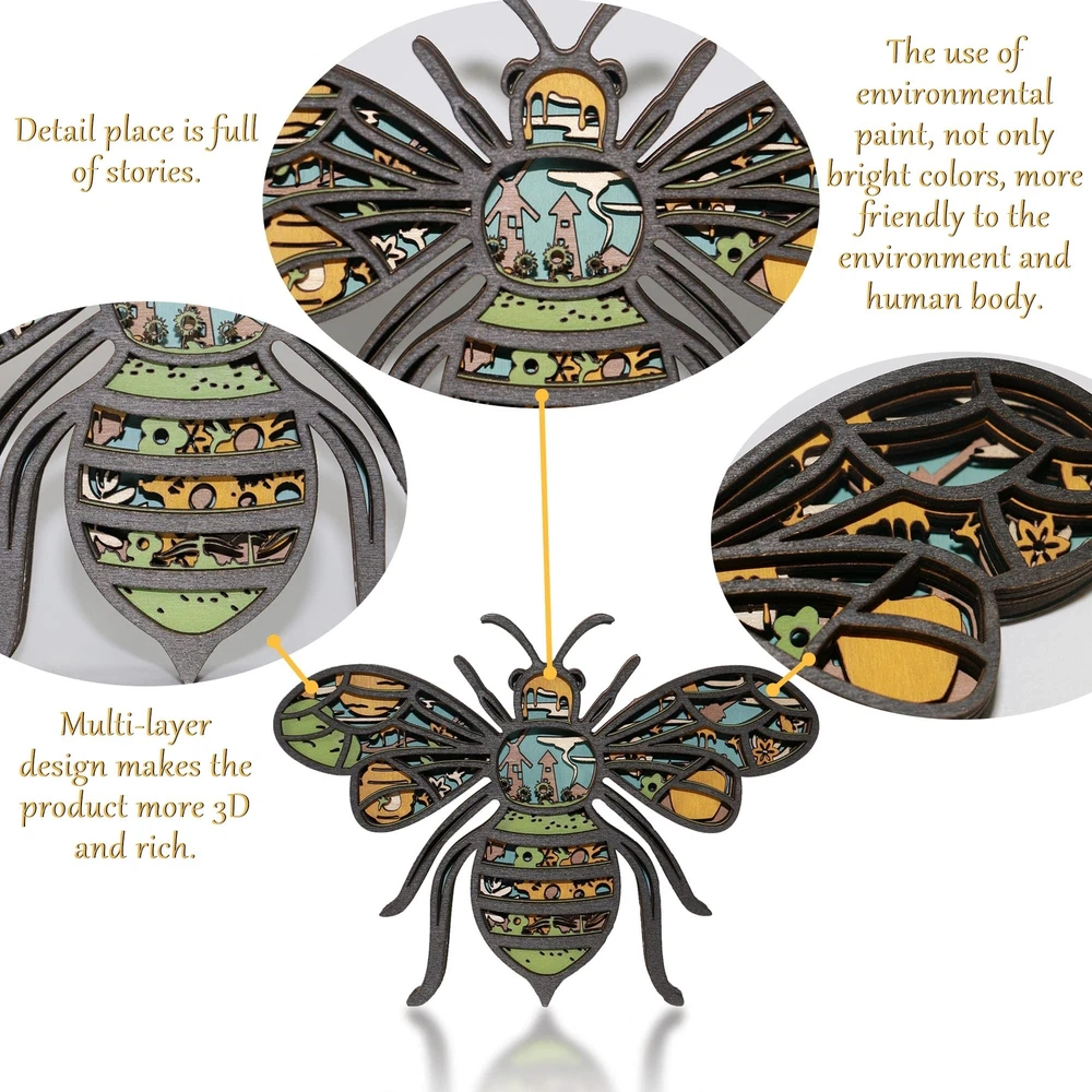 3D Wooden Bee Decor Forest Grass Animal Crafts Statues Rustic Farm Wood Art Wall Sculpture Home Decoration Creative Gift for Office Farmhouse Bedroom Desktop Living Room Cabin Product Details Color: Bee Size: 7.5L" x 5.5W" Brand: CmayAlgc MPN: X-MTBJ-bee-s UPC: Does not apply EAN: Does not apply Product Dimensions: 7.48 x 5.51 x 1 inches Item Weight: 5.3 ounces Manufacturer: CmayAlgc Country of Origin: China Item model number: X-MTBJ-bee-s Date First Available: April 20, 2023 Multilayer Design: 3D Reindeer Decor is made of 6 plies of naturally compressed wood boards which is very strong and stable, each layer has a different detail design, and when combined forms a unique landscape design, making the mountains, Christmas trees, and animals a 3D scene. Size: 19cm/7.48inch * 14cm/5.51inch * 2.5cm/1inch. Different from other mini decorations, our 3D wooden animal ornaments are designed in a large size, which allows you to see the ornaments at a glance, thus becoming one of the must-have items to add a sense of home atmosphere. Eco-Friendly Materials: Compressed wood boards, sustainable environmentally friendly material. Our wooden animal decorations are made of high-quality compressed wood boards, sustainable and environmentally friendly materials, non-toxic and odorless, so you don't have to worry about it even in your child's room. Wooden Craft Highlights: Exquisite wooden handicrafts add an outdoor natural atmosphere to the indoor space and the infinite extension of indoor and outdoor. Suitable for home decor, cafes, bars, farmhouses, desks, closets, bookshelves, and walls, it is a good feeling natural and warm atmosphere. Special Gifts: This creative and unique decor will make a difference in your home and will complement any rustic home decor in your home. It's a great gift idea for you and your nature-loving friends and family around you, and it's also suitable for festivals, thanksgiving, Christmas, parties, and many other purposes.