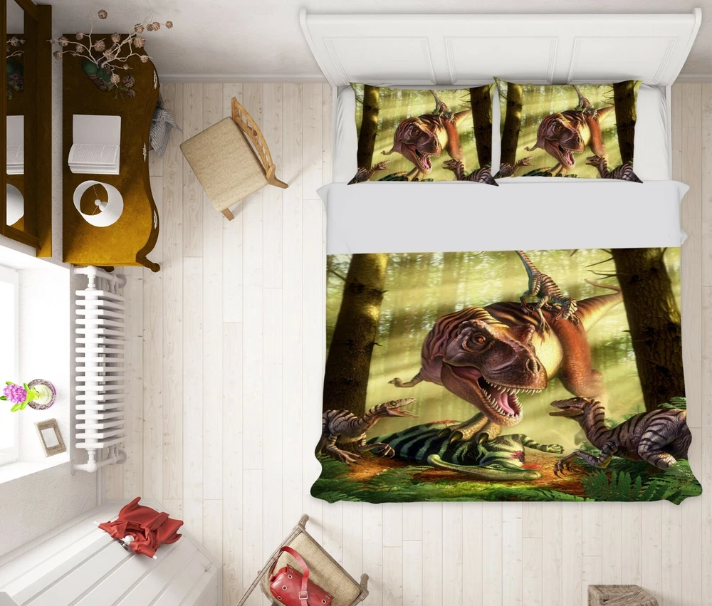 3D Yellow Dinosaur A009 Bed Pillowcases Quilt Duvet Cover Jerry LoFaro Zoe