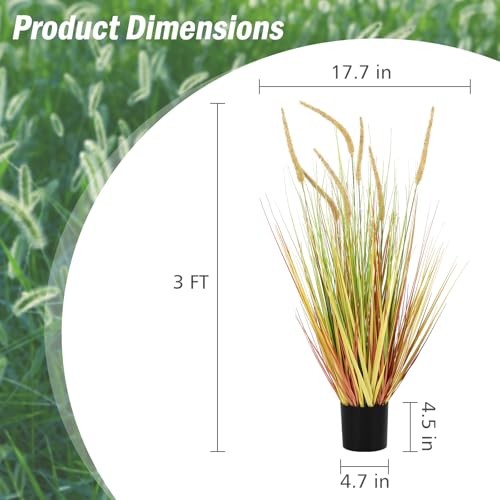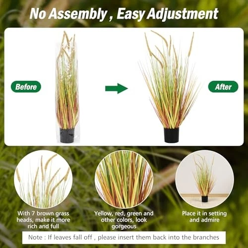 Return Policy Fast Delivery Trusted seller 3FT Artificial Onion Grass Plants, Greenery Floor Plants with Gold Pampas Grass, Fake Tall Potted Plant for Home Office Indoor Housewarming Gift (Gold Pampas) Product Description Gorgeous Looking: Lifelike artificial plant, carefully imitate the appearance of real-life plants. The two tall grass are composed of carefully colored onion grass and horsetail reed flowers. The tall onion grass symbolizes luck, strength and honesty, bringing a good meaning to your life. Perfect Dimension: Tall grass plant artificial have a total height of 3 feet and a base of black plastic pots 4.7 inches in diameter and 4.5 inches in height that can easily fit into any container. Lifelike Beauty: Faux onion grass plant are designed to mimic the texture, color, and shape of natural grass, making them almost indistinguishable from the real thing, natural and realistic faux floor plants are sure to bring color and warmth to your favorite room. Premium Material & Long Lasting: To achieve the best decorative effect and prolong the service life of this plastic onion plant in pot, we use high-quality plastic and synthetic silk fabric to make the trunk and the leaves, so they won’t easily fade and can resist to wear and aging and make the beautiful center piece of your home for the years to come. Easy Maintenance: This artificial tall plants needs no water, no sunlight, no fertilization or special care, will not fade or die, keep its appearance and stay fresh all year round. If it is dusty, just wipe it with a damp cloth. Suitable for living room, dining room, corner of room, void space as well as dining room, office, commercial area or any building lobby. Shipping Returns Payment Shipping Shipping is FREE to all addresses other than APO/PO boxes in the lower 48 states. All our stock ships from US-based warehouses. Shipped via USPS or UPS (depending on location and package weight) Unless stated otherwise, all orders will ship within 24-72 hours of your payment being processed. Check our feedback to see the great reviews of FAST shipping we offer. Returns Seller does not accept returns Payment We currently accept payment via eBay managed payments only. Once payment is cleared, we will dispatch your shipment within 1-3 business days. Please refer to the "Shipping" tab for more information regarding shipping speed to your destination.