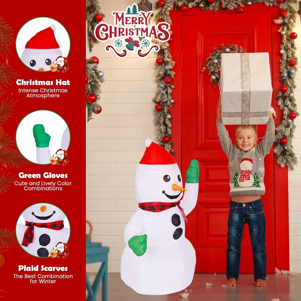 3FT Christmas Inflatable Outdoor Decorations Snowman with Red Hat, Blow up Yard Decorations with Built-in LED Lights for Xmas Party Outside, Yard, Garden, Lawn Decor Item Description [Christmas Inflatables]: This 3FT tall Christmas inflatable snowman with red hat is the best Christmas outdoor yard decoration. It will attract the attention of your family, neighbors and passers-by, and get countless compliments. At night, the built-in bright LED light will illuminate your garden and courtyard, becoming the focal point and creating a joyous atmosphere for your Christmas party. [Multi-purpose]: The 3-foot Christmas blow up snowman with red hat yard decoration can stand firmly. Whether it is decorating the yard for a Christmas party or conducting Christmas-themed commercial celebrations and promotions, this Christmas inflatable outdoor decoration is the perfect choice to welcome your lovely friends and guests. [Easy to Use]: This Christmas inflatables outdoor decoration is very simple to use. Put the plastic bags filled with water or other heavy items(not sharp) into the Christmas blow ups to increase its stability, then fully zip it up and connect it to the power supply. It will blow up within a few minutes. Then use the included inflatable accessories to further ensure outdoor stability. After the holiday, the Christmas blow up yard decoration can be easily deflated, folded and stored. [Excellent material]: Xmas inflatables outdoor decorations are made of high-quality thick, waterproof, snow-proof, and non-fading Oxford cloth. Exquisite stitching enhances the durability of inflatable Christmas decorations. Don't worry about being torn by the wind or damaged by rain. Christmas inflatables are durable and can be reused for a long time. [Safe to use]: The built-in air blower and plug have passed strict quality inspection and 42H work test, and can continuously inflate the Christmas inflatable yard decorations. If you have any defects or problems when you receive the Christmas inflatable, please contact us through "Contact Seller", we will provide you with the best solution. › See more product details Features of Christmas Inflatables snowman with red hat with built-in LED lights for outdoor yard garden decorations: 1. Christmas inflatables: 3FT Christmas blow up snowman with red hat is a very eye-catching Christmas yard garden decoration. Built-in bright LED lights will illuminate your garden and yard at night, constantly attracting the attention of your friends, neighbors and passers-by, earning countless compliments. 2. High-quality materials: This Christmas blow up yard decoration is made of waterproof and snow-proof Oxford fabric. The thick fabric and fine wiring ensure the lifespan of this inflables de navidad. 4. Simple installation: Just put the water bag filled with water into the Christmas blow up snowman, zip it up, plug it in, the Christmas inflatable will automatically inflate in a few minutes, and then use the included accessories to increase the stability of the Christmas inflatables outdoor decorations (in high winds and heavy rains, it is recommended to take it home). 4. High-power fan and UL safety-certified power adapters: The built-in fan and the power adapter have successfully passed UL safety certification, making them both safe and value for money. 5. Built-in LED, warmer and brighter: Built-in super bright LED lights will illuminate your lawn or yard, welcoming your lovely neighbors and guests, creating a fun and memorable Christmas holiday. Payment We accept payment only through PAYPAL Shipping We ship products worldwide through standard express courier service, it will reach within 7 to 10 days to abroad buyers, we ship the product after recieved clear payment and give full information about shipment to the buyer Return We accept product return within 7 to 21 days from delivery date but product should be in original position and not in damaged condition,the return shipping charges will be buyer responsibility