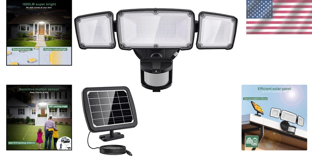 3-Head Solar Flood Light with Adjustable Detection - 2400mAh Battery, IP65 ‹ › ‹ › ‹ › ‹ › ‹ › ‹ › ‹ › ‹ › ‹ › 3-Head Solar Flood Light with Adjustable Detection -2400mAh Battery, IP65 Features: Solar Powered & Energy Saving: Equipped with a built-in solar-powered 2400mAh battery, these lights are eco-friendly and eliminate additional electricity costs. Fully charged, they provide an impressive 50 minutes of illumination at 1600 lumens brightness. Advanced Motion Sensor: With a wide 180° motion detection angle, these lights can accurately sense moving people, animals, or vehicles. The customizable adjustable switch allows you to set the sensing distance between 0-72 feet and the lighting duration from 0-120 seconds. IP65 Waterproof Rating: Designed to withstand the elements, these solar flood lights are IP65 rated, ensuring excellent performance through rain, sleet, or snow. Durable and Professional Design: With high-quality LED beads and expertly crafted optical filter lenses, this 3-head design allows for maximum flexibility and control—perfect for illuminating driveways, garages, porches, or yards. Easy Installation: Installation is a breeze! Mount this outdoor solar motion security light to any wall with the simple-to-follow manual. It supports wall, eave, and soffit mounting, ensuring versatile placement options. Why Choose Our Solar Flood Light? Are you looking for a lighting solution that combines efficiency with elegance? Our 3-Head Solar Flood Light is not only a beacon of safety but also a guardian for your home. Its advanced sensing technology paired with robust waterproof features makes it an ideal choice for outdoor security. No more worrying about the electric bill—this solar-powered marvel is as gentle on your finances as it is on the environment. Illuminate your surroundings with confidence and style. Invest in your security today with our state-of-the-art Solar Flood Light, and enjoy the peace of mind that comes with it! Shipping Free & Fast Shipping - We offer free shipping to most of the USA with a normal delivery time of 3-10 businessdays. However, due to various situations, additional delivery time (up to 3 weeks) may be required for some items. Alternative Carriers - We may use alternative carriers (e.g. USPS, FedEx, UPS, etc.) to ensure your package arrives safely and on time. Due to the use of multiple carriers, we are unable to provide a tracking number automatically. Handling Time - Orders are processed and shipped within 1-5 business days of receiving cleared payment. Shipping Restrictions - Shipping to Alaska, Hawaii, Puerto Rico, Guam, and other US territories may incur shipping charges or delivery restrictions. Please contact us before ordering, or your order can be refunded/cancelled. State Restrictions - There may be restrictions based on your state of purchase. For example, certain items may not be shipped to California due to state regulations. Contact for Tracking Updates - If you require tracking updates or have any concerns about the delivery of your order, please feel free to contact us, and we will be happy to assist you. Return Please see our ebay return policy. We do not accept return on most products. This is to avoid customers mis-using ebay returns. All sales are final. Please be sure to check the return policy listed at the top of the listing. In rare cases, we may accept returns, if the buyer pays both ways shipping and 20% restocking fee. If you are un-sure of return policy of a particular item, please ask before buying. Payment We accept all major credit cards, PayPal, and Apple Pay for your convenience. Your payment information is secure and encrypted to ensure a safe and seamless transaction. Please complete your payment within 3 days of purchase to avoid any delays in shipping. Feedback Your feedback is extremely important to us. We strive to provide the best products and customer service possible. If you are satisfied with your purchase, please take a moment to leave us a positive review. If you have any concerns or issues with your order, please contact us before leaving negative feedback. We are committed to resolving any problems and ensuring your satisfaction. Contact Us If you have any questions or concerns, please feel free to reach out to our customer support team. You can contact us through the eBay messaging system. We are available Monday to Friday, 9:00 am to 5:00 pm EST, and we will do our best to respond to your inquiry within 24 hours. Buy it now and enjoy a pleasant shopping experience! UPC: Not Set Unit Quantity: 1 Features: Energy Saving,Waterproof,Motion Sensor Theme: Animal Light Color: White Mounting: Wall Mounted Material: Polycarbonate Control Style: Remote Control,Adjustable Switch Smart Home Compatibility: Not Set Labels & Certifications: Not Set Type: Outdoor Security Light Brand: Unbranded Power Source: Solar Installation Area: Outdoor Sensor Type: Motion Lighting Technology: LED Number of Lights: 3 Color: Black Number of Settings: 1 Energy Star: Not Set MPN: Not Set EC Range: Not Set Style: Modern Finish: Powder Coated Size: Medium Power Consumption: 15 W IP Rating: IP65 Voltage: 3.7 V Bulb Shape Code: GU10 Item Diameter: Not Set Country/Region of Manufacture: Not Set Lumens: 1600 lm Color Temperature: 5500-6000 K Bulb Life Hours: Not Set Model: Not Set Item Height: Not Set Item Length: Not Set Item Weight: 2.3 lb Item Width: Not Set Unit Type: lb