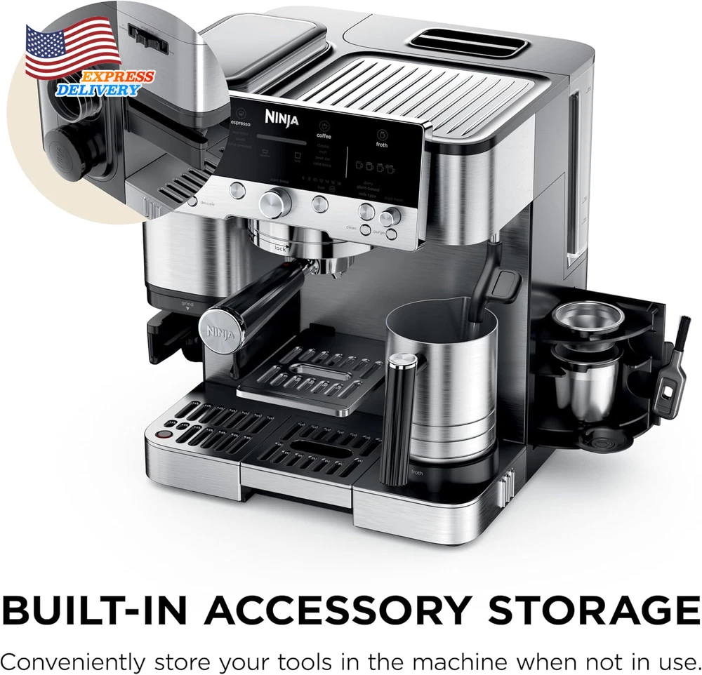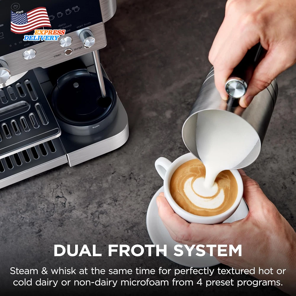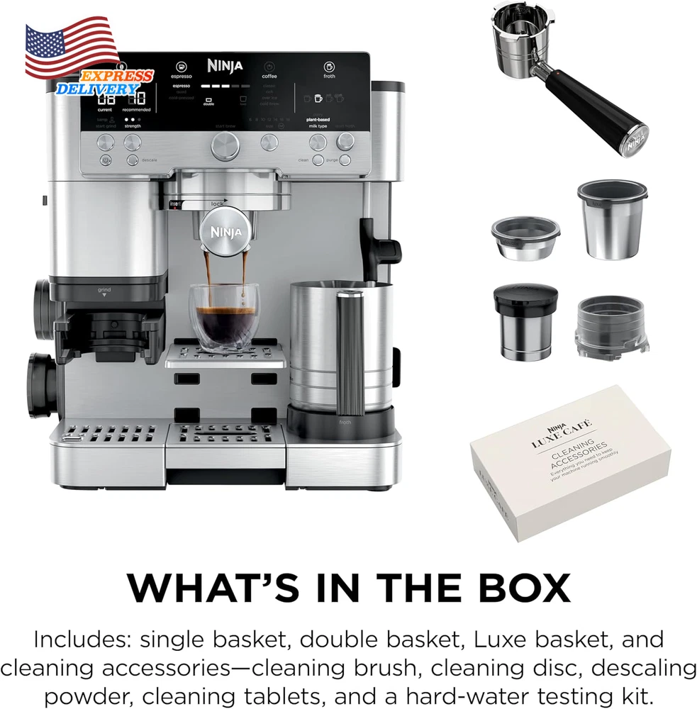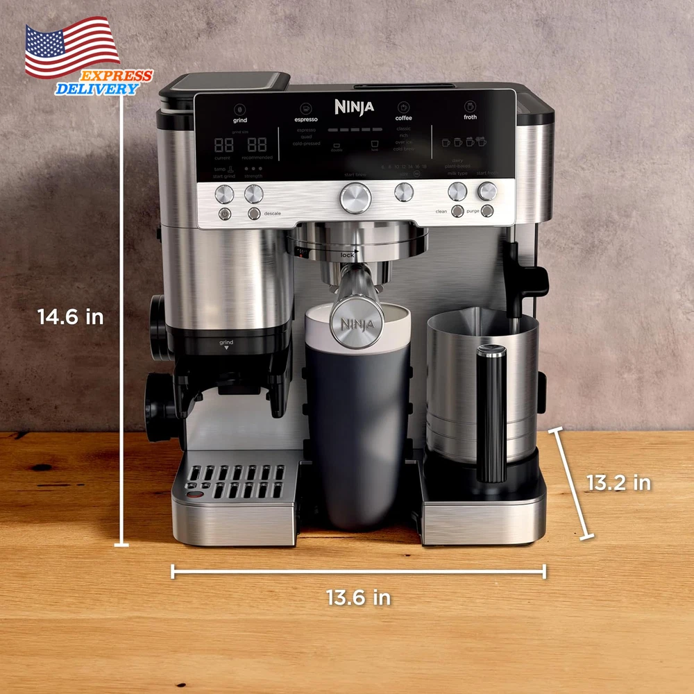 Store New Arrivals Add to Favorite View Feedback Contact 3-In-1 Espresso Drip Coffee and Cold Brew Machine Coffee Grinder Milk Frother US Description Item model number ES601 Unit Count 1.0 Count Style Luxe Cafe Capacity 4.4 Pounds Customer Package Type Standard Packaging Color Stainless Steel Product Dimensions 12.99"D x 13.39"W x 14.57"H Is Dishwasher Safe Yes Specific Uses For Product Cappuccino, Espresso, Iced Coffee, Latte, Mocha Item Weight 31.8 pounds Batteries required No Operation Mode Fully Automatic Human Interface Input Buttons Voltage 120.0 Model Name ES601 Global Trade Identification Number 10622356635162 Coffee Maker Type Espresso Machine Special Feature Auto Shut-Off, Dishwasher Safe Parts, Milk Frother, Programmable, Timer Number of Items 1 3 MACHINES IN 1: Brew without limits with no guesswork espresso, well-balanced drip coffee, and rapid cold brew. 2 Espresso Styles — double shot or quad shot, 3 Drip Coffee Styles—classic, rich or over ice, and 2 Cold Brew styles— cold pressed espresso or cold brew coffee (drip coffee and cold brew available in 6, 8, 10, 12, 14, 16, 18 oz. sizes). BARISTA ASSIST TECHNOLOGY: Unlock the ultimate guided experience with customized grind size recommendations, weight-based dosing, and active brew adjustments for temperature & pressure for balanced flavor, deliver café-quality brews, no guesswork required. INTEGRATED GRINDER: The conical burr grinder has 25 grind settings to deliver a fresh, precise grind for versatile drink options for every type of bean. WEIGHT-BASED DOSING: Different drinks require different amounts of grounds. Our built-in scale does the work for you with weight-based dosing tailored for your chosen drink. Other machines simply grind for a set amount of time, and you need to manually weigh your grounds. HANDS-FREE FROTHING: Whether using dairy or plant-based milk, creating hot or cold microfoam, the Dual Froth System combines steaming and whisking at the same time to effortlessly create perfectly textured microfoam. Removing the trial-and-error from manual frothing with 4 preset programs including steamed milk, thin froth, thick froth and cold foam FLAVORFUL COLD-PRESSED DRINKS: Espresso brewed at lower temperature and pressure, at a slower pace to extract a more flavorful, smooth brew. Perfect for creating a crowd-pleasing espresso martini. PERFECT PUCKS: Assisted tamper delivers the perfect puck with evenly distributed and compact grounds, ensuring ideal conditions for even water distribution that results in a bold, high-quality shot. BUILT-IN STORAGE: Conveniently store the tamper and funnel on the side of the machine when not in use, and keep brew baskets, brush, and cleaning disc in the built-in storage compartment. WHAT’S INCLUDED: Portafilter, Milk Jug, Double Basket, Luxe Basket, Assisted Tamper, Cleaning Brush, Cleaning Disc, Funnel, Descaling Powder, Cleaning tablets, Hard Water Testing Kit, Instructions & Inspiration Guide. Ninja is the #1 Best Selling Espresso Maker in 2025 Year to Date. Source: Circana, LLC, Retail Tracking Service, Espresso Makers, Model ES601, Dollar Sales, Jan 5 2025 – Sep 27 2025 The ultimate guided experience that makes espresso uncomplicated. The Ninja Luxe Café Premier Series is an intelligent espresso & coffee system with unmatched 3-in-1 versatility (no guesswork espresso, well balanced drip coffee and rapid cold brew), that helps you elevate your coffee routine and create café-quality drinks at home. Barista Assist Technology guides you to the perfect cup from grind size recommendations to automated brew adjustments, while the Dual Froth System effortlessly creates perfectly textured microfoam hands-free. ABOUT US We offer the best prices around on high quality products. Our E-store includes media such as books, movies, music and games while offering electronics, toys, sporting apparel, clothing, tools, general home, garden items and more. SHIPPING We are always working hard to ensure your package arrives as soon as possible. Please understand that some factors like weather, high postal traffic, and the performance of shipping companies are outside of our control. We offer free shipping to the lower 48 states and ship within 2 business days of payment, usually sooner. We do not accept P.O. Boxes. Please provide a physical address. For shipping outside of the continental USA, we only use eBay's Global Shipping Program.The item is shipped to KY and then sent to the rest of the world. International customers are responsible for all duties and taxes. Continue to check out in order to calculate costs for shipping the item to your country. Messages regarding eBay's Global Shipping Program MUST be directed at eBay EXCLUSIVELY. RETURNS We offer a 30-Day Return Policy on items which you are not completely satisfied with. You have the option for a full-refund or an exchange of the item. No returns are available on items shipped outside of the USA. PAYMENT We accept PayPal. CONTACT US This page content is yet to come Please ad us to your favorite seller and visit again later Thank You CUSTOMER SATISFACTION We try our very best to make sure every customer is completely satisfied. If there's a problem, message us! We're happy to help. WE ACCEPT Copyright © 2021 AutoDS. | All Rights Reserved