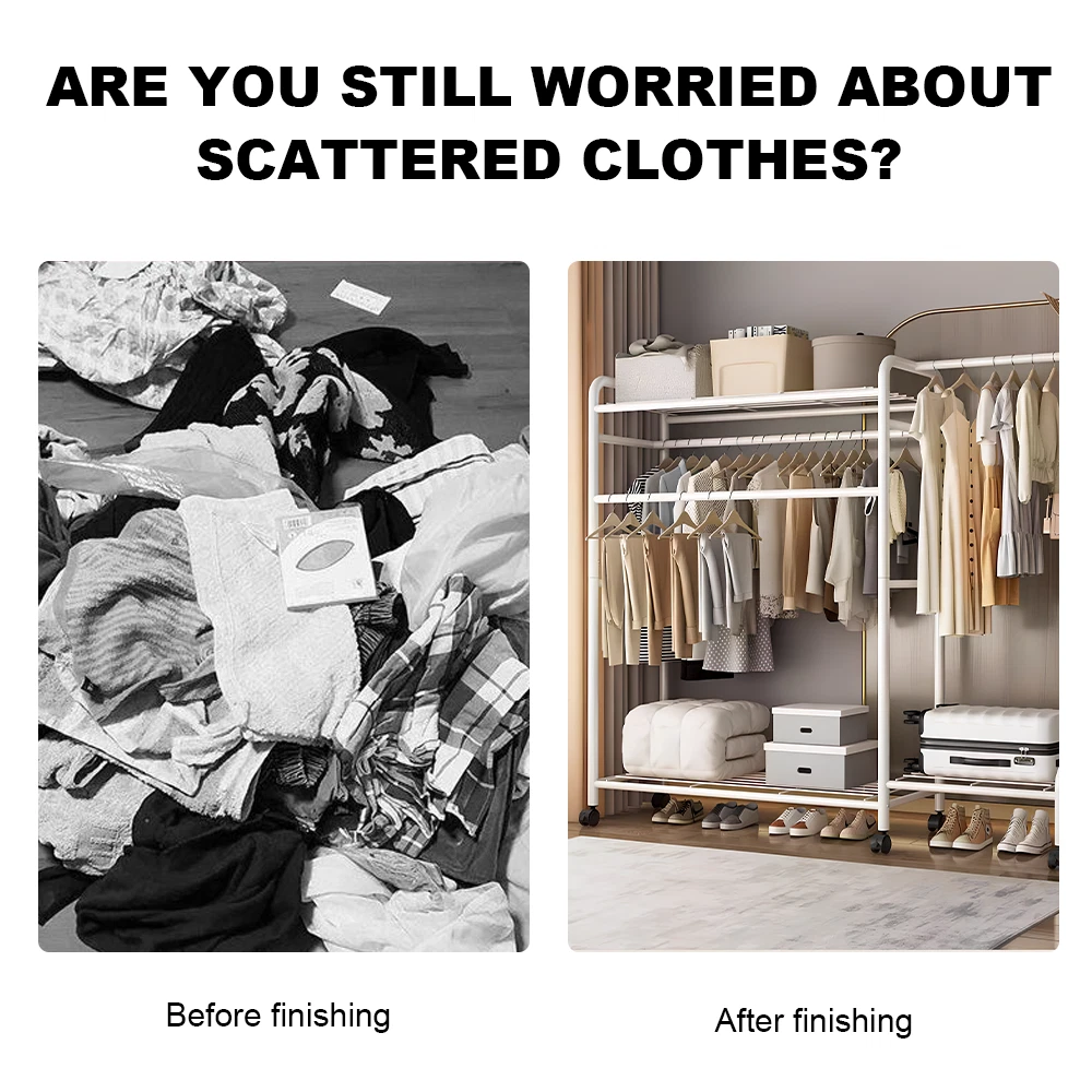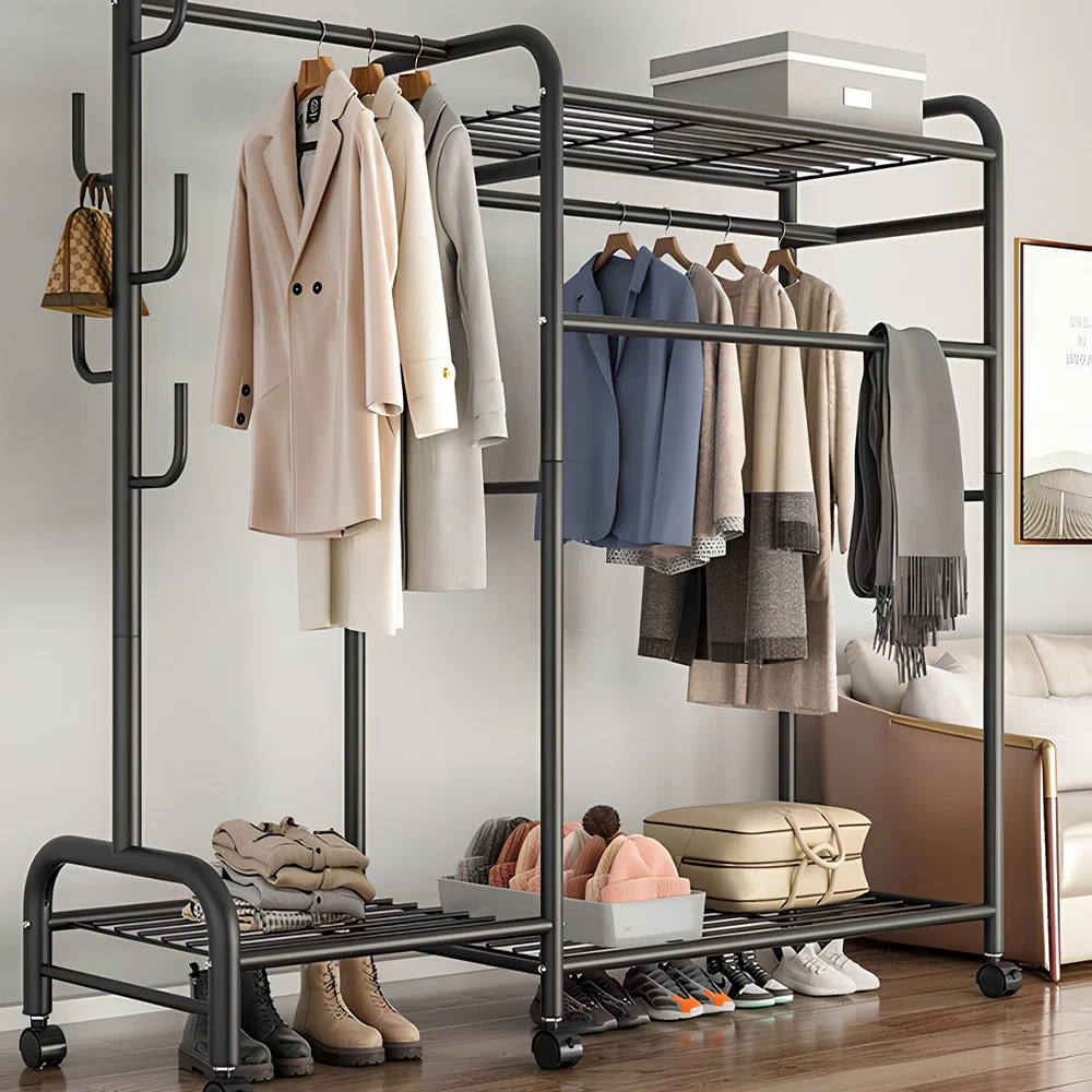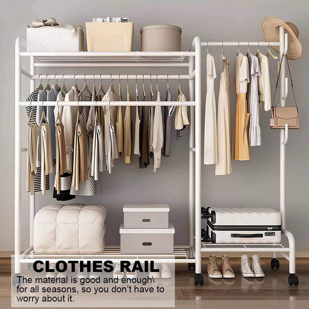 3-In-1 Heavy Duty Clothing Rack with Shelves Load 620Lbs Closet Rack With Wheels