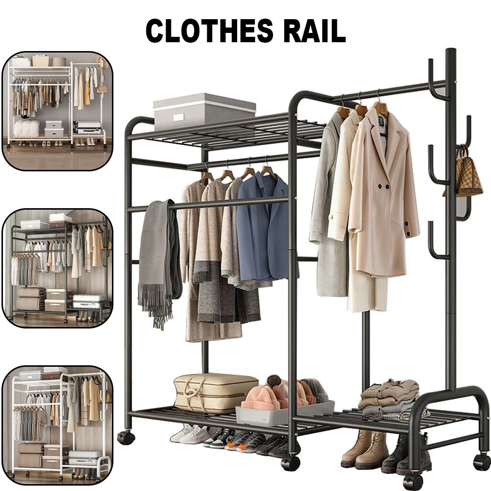 About this item VERSATILE ALL-IN-ONE GARMENT RACK - Tired of cluttered clothes? Let newly designed clothing racks for hanging clothes be your ultimate solution! With 3 hanging rods, 3 shelves, and a coat rack with 4 hooks, everything finally has its place. Hang your jacket as soon as you walk in, toss your hat or scarf on the hooks, and store your shoes or bags neatly on the shelves. Declutter your space effortlessly and keep your room organized with everything right where you need it! MAX LOAD 620 LBS - DURABLE AND HEAVY DUTY! This metal clothes rack offers waterproof, rust-proof, corrosion-resistant, and scratch-resistant performance. Expertly connected with sturdy screws, High quality metal tube ensure exceptional stability, supporting up to 620 lbs of weight. The side support rods further boost stability while providing extra storage options, maximizing your organization space efficiently. EFFORTLESS MOBILITY, MAXIMUM SAFETY! Thanks to the 360° swivel wheels, moving your portable clothes rack is a simple task. With just a gentle push, you can effortlessly transport your rack to any spot you desire. These wheels are equipped with a locking feature, allowing you to securely park the closet rack in a stable position whenever needed. MULTI-FUNCTIONAL & COMPACT! This clothes racks for hanging clothes is the ultimate space-saving solution for your home! Its versatile design offers hanging space for clothes, plus shelves for shoes, bags, and others. Ideal for homes with limited space, it fits seamlessly into any room—whether it's your bedroom, laundry room, closet, porch, living room, or even office. Specifications: Overall dimensions:150*37*165cm /59"x15"x65" Material: High-quality iron pipe Color: Black/White Payment Delivery details Return Contact us Feedback Payment We only accept the paypal payment methods. All major credit cards are accepted through secure payment processor PayPal.(* If you use e-check on PayPal, delivery may take longer, as we will hold your order until your e-check clear) Delivery details Item will be shipped within 2 business day after confirmed payment. (Not including weekend or public holidays) Please verify your address during checkout. We are not responsible for any wrong or undeliverable addresses. All items will be checked strictly before shipping and it will be shipped to your PayPal address. Estimated delivery time is 1-5 working days (Not including weekend or public holidays) Delivery times may vary particularly during peak periods or unexpected weather conditions. In event of a very unlikely slight delay, your patience would be highly appreciated. We do not provide pick up or local collection service so far. Return We accpet return within 30 Days of dispatch. For exchange buyer MUST return the defective item for 1 to 1 exchange, return cost due to buyer. For free shipping means we paid the shipping fee on your behalf, that fee will be deducted. In case return cause by wrong buy, return postage will be at buyer side also. Please contact us immediately about any your return before shipping back the Once the item has shipped the regular return policy applies. Notifying us ahead of time will help us to ensure that your return is dealt with promptly upon arrival. Contact us We guarantee 100% Buyer Satisfaction. We are increasingly expanding international markets based on high quality products, excellent service, reasonable priceboas and timely delivery. Please contact us at any time for more information.We work hard to make sure EVERY CUSTOMER 100% approvingly. Feedback Very appreciated for your support. I hope you are happy with your purchase. We maintain high standards of excellence and strive for 100% customer satisfaction! Feedback is very important to us. We request that you contact us immediately BEFORE you give us or feedback, so that we can satisfactorily address your concerns. If you have any problem, please feel free to contact us via ebay message, we will reply your email within 24 hours (except weekends and holidays). We will do our best to solve your problem as soon as possible. We appreciate your continued patience and willingness to work with us. Thank you for choosing us and have a great day! Assembly Required No Brand Unbranded Department Adults Features Heavy Duty, Portable, With Rack, With Wheels, Hanging Finish Metallic Item Height 65 in Item Length 59 in Item Weight 12.13 lbs Item Width 15 in Material Metal Mounting Free Standing Original/Reproduction Original Personalized No Required Tools ‎Easy to Install Style Simple Type Clothes Rail MPN Does not apply