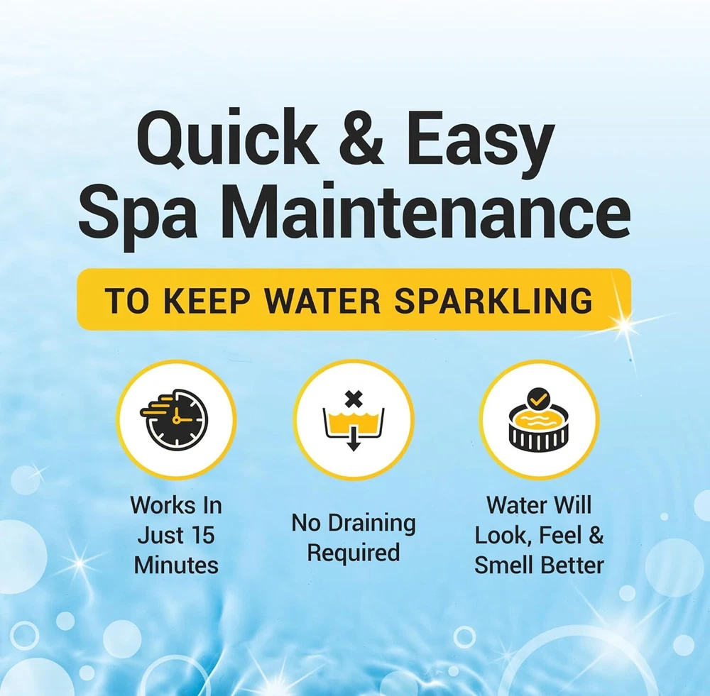 3-IN-1 WATER CARE: Our weekly maintenance treatment includes a combination of hot tub cleaner, conditioner, and clarifier. Specially formulated to deliver sparkling clean and crystal clear water and ensure a soft and silky water feel for your next soak! KEEPS YOUR HOT TUB FEELING FRESH: Helps prevent gunk and buildup from accumulating in your plumbing system, jet lines and filter. Use weekly to protect all your hot tub parts and extend the life of your spa. EASY TO USE: Simply add 2oz of 3-IN-1 Weekly Care for every 500 gallons of water and turn jets on high for 30 seconds. Repeat Ouster 3-in-1 Weekly Care every 7 days thereafter. For best results, use together with Ouster Hot Tub Restoration to deep clean hot tub plumbing, jets, and tubes. WORKS ON ALL SPA TYPES: Formulated for today's premium acrylic hot tubs, inflatable hot tubs and jetted portable spas. QUALITY YOU CAN TRUST: Ouster spa and hot tub chemicals are made of the highest quality ingredients and proudly manufactured in the USA. Give our 3-IN-1 a go and your spa will thank you! Product Description The video showcases the product in use. The video guides you through product setup. The video compares multiple products. The video shows the product being unpacked. Can I safely add this product to my hot tub without risking discoloration? This product is free from bleach and harsh ingredients that could cause fading or discoloration. Where is this product made? This product is produced and packaged within the United States. Is this suitable for use in both inflatable and saltwater hot tubs? Hot Tub Weekly Care is compatible with all types of hot tubs. It's designed to be safe for use with various sanitizers, including chlorine, bromine, mineral, saltwater, and biguanide systems. Should Hot Tub Weekly Care be used as a replacement for my usual sanitizers like chlorine or bromine? No, Hot Tub Weekly Care serves as a water clarifier and conditioner and should not replace your sanitizer. It aids in maintaining clear water but does not have sanitizing properties. You should continue using your regular sanitizer. What is the difference between Hot Tub Weekly Care and Hot Tub Power Purge? Hot Tub Power Purge flushes built-up gunk hiding in your hot tub’s plumbing system. This treatment should be used once every 3-4 months. Hot Tub Weekly Care helps keep your water clear in between Purge treatments. Just one dose needed every 7 days. Shop Ouster Products Add to Cart Add to Cart Add to Cart Add to Cart Add to Cart Add to Cart Customer Reviews 4.3 out of 5 stars 4,326 4.5 out of 5 stars 745 4.3 out of 5 stars 418 4.0 out of 5 stars 31 4.8 out of 5 stars 27 4.4 out of 5 stars 851 Price $24.97 $ 24 . 97 $24.97 $ 24 . 97 $59.97 $ 59 . 97 $17.95 $ 17 . 95 $19.97 $ 19 . 97 $21.99 $ 21 . 99 Size Options 8oz, 16oz, 32oz 2oz, 8oz Kit 32oz 16oz 8oz Use Weekly Care & Maintenance Deep Clean for Plumbing & Jets Complete Kit for Hot Tub Deep Clean for Filters Cleaner for Inside Surfaces Deep Clean for Plumbing & Jets Frequency Every 7 Days Every 3-4 Months Weekly & Quarterly Every 3-4 Months As Needed Every 30 Days Fast Acting & Maximum Strength ✔ ✔ ✔ ✔ ✔ ✔ Works on All Tub Types ✔ ✔ ✔ ✔ ✔ ✔ Professional Grade Formula ✔ ✔ ✔ ✔ ✔ ✔ Extends Spa Life ✔ ✔ ✔ ✔ ✔ ✔ Made in USA USA USA USA USA USA