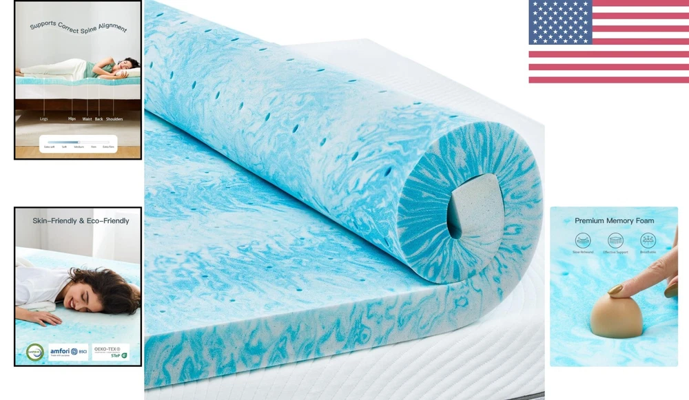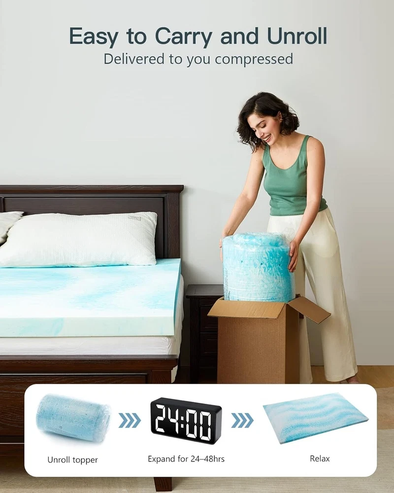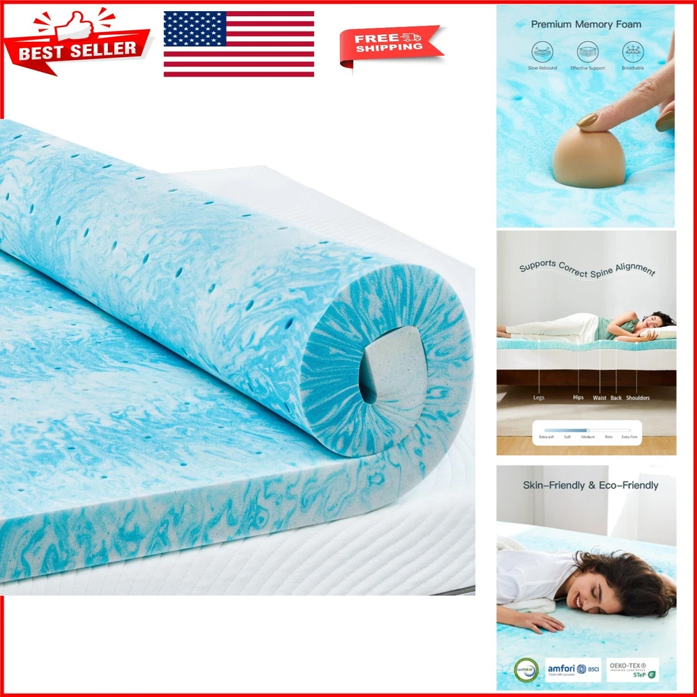 3-Inch Queen Memory Foam Bed Topper - Cooling Gel & Support for Better Sleep