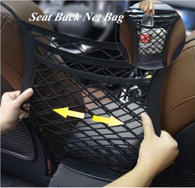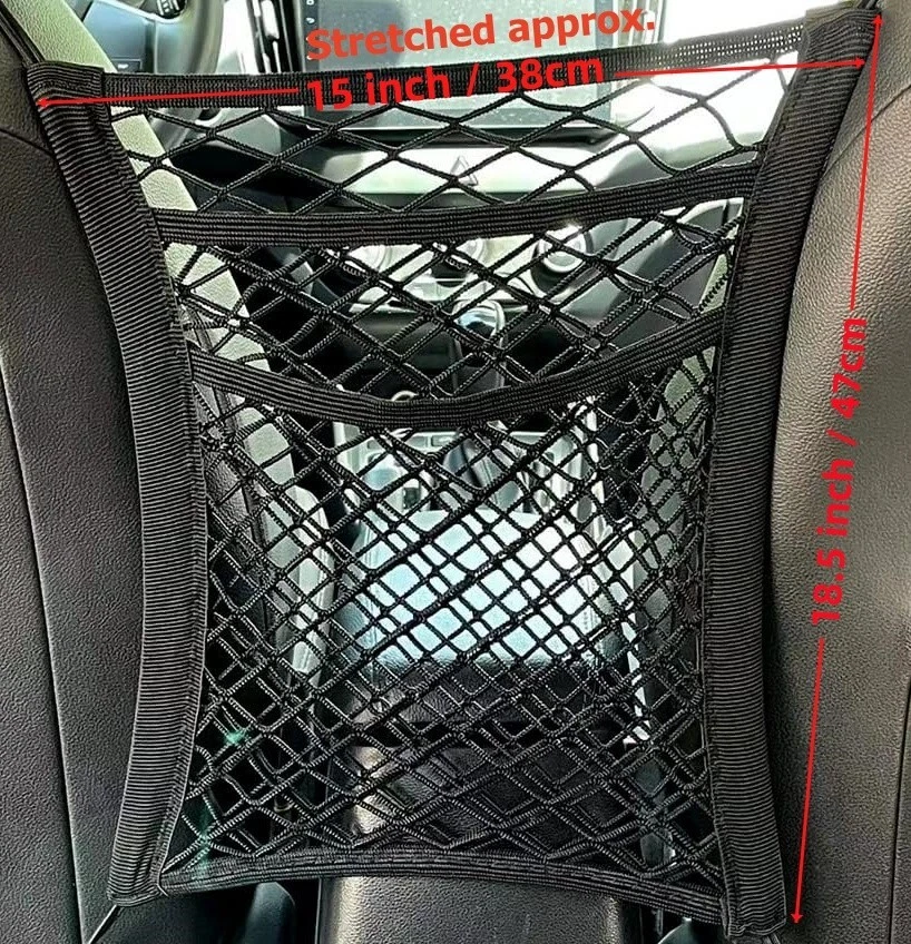 - Universal for Most Cars : Suitable for a variety of vehicle types, especially those with small front seat pitch such as cars, small and medium sized SUVs. For those with large front seat pitch, it also fits for placing at the back of seats to facilitate rear passengers to place items. - Storage Organizer : A simple item for keeping your car interior tidy and clutter-free, not messy any longer. Easy to store and fetch your personal belongs. - Premium Material : Maintain high elasticity, this mesh organizer can extends as needed. Not easy to deform or damaged, durable for a long-term use. - Large Capacity : Measures 10.2 by 11.5 inches and up to larger after stretch. The three-layer design makes the storage space lager and you can store purse, facial tissues, water bottles and more. - Kids, Pets Barrier : As a backseat barrier, prevents kids and pets disturbing your drives to keep the rides comfortable and safe.