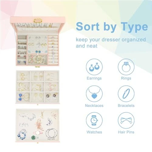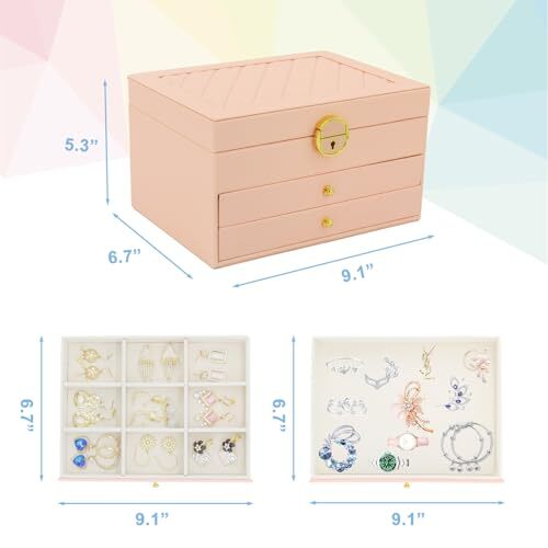 Return Policy Fast Delivery Trusted seller Jewelry Box for Women, 3-Layer Jewelry Organizer, Jewelry Storage Case PU Leather for Earrings, Bracelets, Ring, Necklaces-Pink Product Description 【Jewelry Organizer Materials】This jewelry case is made of durable PU leather, which is dirt-resistant, waterproof, non-deformable and easy to clean. The inner lining is wrapped in durable and soft velvet to provide all-round protection for your jewelry, and with a smooth and exquisite metal buckle for easy opening and closing. The material of leather gives your jewellery box an excellent touch and a premium look. 【Large Capacity Travel Jewelry Case】The jewelry holder uses a 3-layer design with 2 drawers. The lid has hooks and small pockets for necklaces or long earrings; The first compartment is for earrings and rings; The second compartment can store small items, hair clips or charms; The compartment space can be adjusted freely; The third compartment is a large drawer w you can put larger items, watches or lipsticks and so on. 【Space-Saving Jewelry Holder 】This travel jewelry box can keep your jewelry organized and prevent your necklaces from tangling. The jewelry box displays your jewelry neatly and stylishly, which can better classify jewelry. No more messy, damaged or misplaced. No more struggling to find w your matching pieces are everyday. Gets your daily dressing up quicker and easier. 【Portable & Perfect Size】The jewelry box looks very cute, large enough to store jewelry but small enough to save space, lightweight,great to throw in a suitcase or tucking in a drawer,super convenient when traveling! Compact and generous design goes easily with your decor. Portable earring box is a breeze to pack and sits beautifully on your dresser, nightstand, bathroom counter or vanity, saving lots of space to make your dressing table and room look neater. 【Ideal Decorative Jewelry Gift Box】This velvet jewelry organizer looks elegant and considerate. It's perfect for the women who has lots of jewelry or accessories. Our jewelry box is perfectly packaged and comes with a beautiful greeting card. Stylishly designed, this jewelry display is perfect gift for mother, wife, girlfriend, daughter, friends even bridal party on Wedding, Christmas, Birthday, Anniversary, Mother's Day, Valentine's Day. Shipping Returns Payment Shipping Shipping is FREE to all addresses other than APO/PO boxes in the lower 48 states. All our stock ships from US-based warehouses. Shipped via USPS or UPS (depending on location and package weight) Unless stated otherwise, all orders will ship within 24-72 hours of your payment being processed. Check our feedback to see the great reviews of FAST shipping we offer. Returns Seller does not accept returns Payment We currently accept payment via eBay managed payments only. Once payment is cleared, we will dispatch your shipment within 1-3 business days. Please refer to the "Shipping" tab for more information regarding shipping speed to your destination.