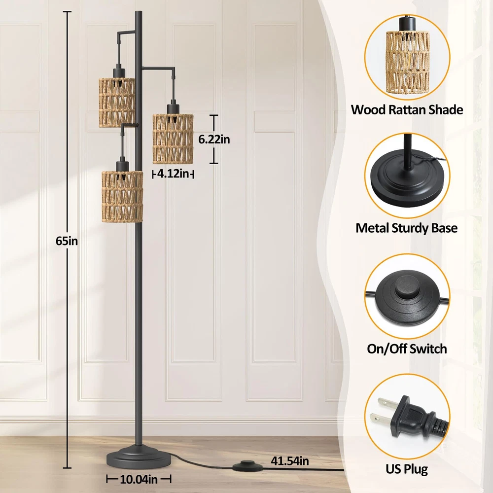 Natural Rattan Lampshade and Solid Base: This farmhouse floor lamp comes with 3 hand-woven rattan lampshades: Natural and Eco-friendly, Good light transmission and Soft light. Heavy Metal Base: The lamp base is made of heavy metal to ensure that it is stable enough and resistant to tip over, ensuring the safety of your home. Whether you install this rustic boho floor lamp in any room of home, you will be immersed in the warmth of the light and the wonderful ambience to enjoy! Elegant Minimalist and Classical Appearance: this space-saving 3 lights tree floor lamp brings tall visual effects when creating an artistic ambiance in your room. Illuminate your space in classic and contemporary style. 65'' vintage tall pole lamp is crafted of solid rattan wood and metal frame, it is an ideal choice for your home with the convenient matching footswitch. This rustic standing lamp with rattan shades is a great present for parents or friends. Foot Switch to Turn on/off: It is very convenient to have a 2 way switching ON /OFF button with foot switch. Spare your hands to do something else, saves you from bending down to turn off the light. this rustic floor lamp can be controled easily. Widely Application: The industrial floor lamp have both retro and simple styles, which are perfect for living room, kitchen, dining room, coffee shop, basement, corridor, stairwell, bar, club, library, office, entrance decoration, bedroom, reading room, etc. this unique rattan floor lamp is a best choice for your friends or family as a Christmas, Birthday, Housewarming, Festival present. They will like them. High-end but moderate cost, this minimalist standing lamp will not exceed your budget. Include 3 Bulbs: The farmhouse standing lamp contains three E26 light bulbs 6w 2700k, you don't need to buy extra. Also, this vintage floor lamp is easy to put together. No tools required, just take a few minutes to following the instructions, you can enjoy the tall pole lamp immediately.