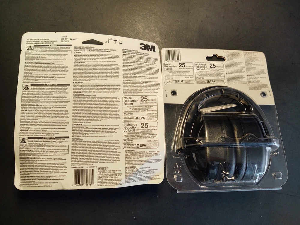 3M Safety Project Kit Earmuff, N95 Mask, Goggles and Earplug 25 dB NRR Home Shop Please see pictures for reference! Feel Free to Communicate, I answer all messages within 24 hours Thank you for shopping my Colorado Small Business! The 3M Project Safety Kit includes safety goggles, respirator and corded reusable earplugs for an all in one safety kit. Safety goggles help protect eyes against certain airborne particulates and chemical splash. Corded reusable earplugs provide a 25 dB NRR protection and the N95 respirator is used for non harmful dusts from sanding, grinding, sawing and insulating particles. The 3M Project Safety Kit includes safety goggles, respirator and corded reusable earplugs for an all-in-one safety kit + 3M Earmuffs for extra hearing safety & protection The N95 respirator is used for non-harmful dusts from sanding, grinding, sawing and insulating particles NIOSH approved particulate respirator Respirator features 3M Cool Flow Valve for heat reduction and easier breathing Corded reusable earplugs provide a 25 dB NRR protection Earplugs feature a cord for convenient storage around neck when not in use Safety goggles help protect eyes against certain airborne particulates and chemical splash Safety goggles meet ANSI Z87.1-2010 requirements