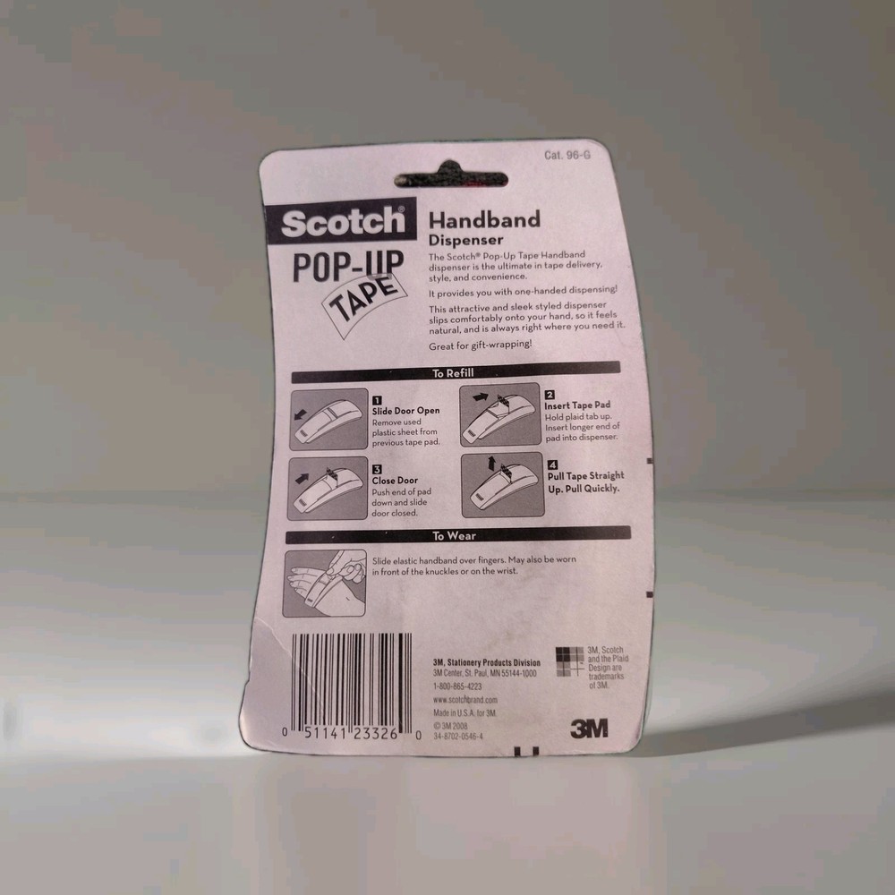 Color may vary. This 3M Scotch Pop-Up Handband One Hand Dispenser Refill is perfect for all occasions, whether you're wrapping gifts or organizing your desk. The pre-cut tape strips come in a pack of 75 and are easy to use with one hand. The silver dispenser is stylish and fits any decor. The handband dispenser is great for those who struggle with traditional tape dispensers and refillable tape is a must-have for any office or desk. This product is a great addition to your gift wrapping supplies and can save you time and hassle. Get your hands on this one-of-a-kind 3M Scotch Pop-Up Handband One Hand Dispenser Refill today!