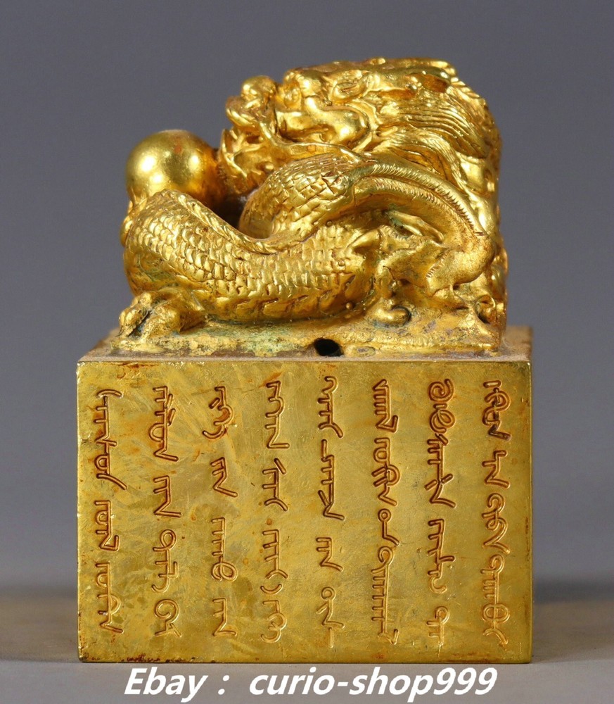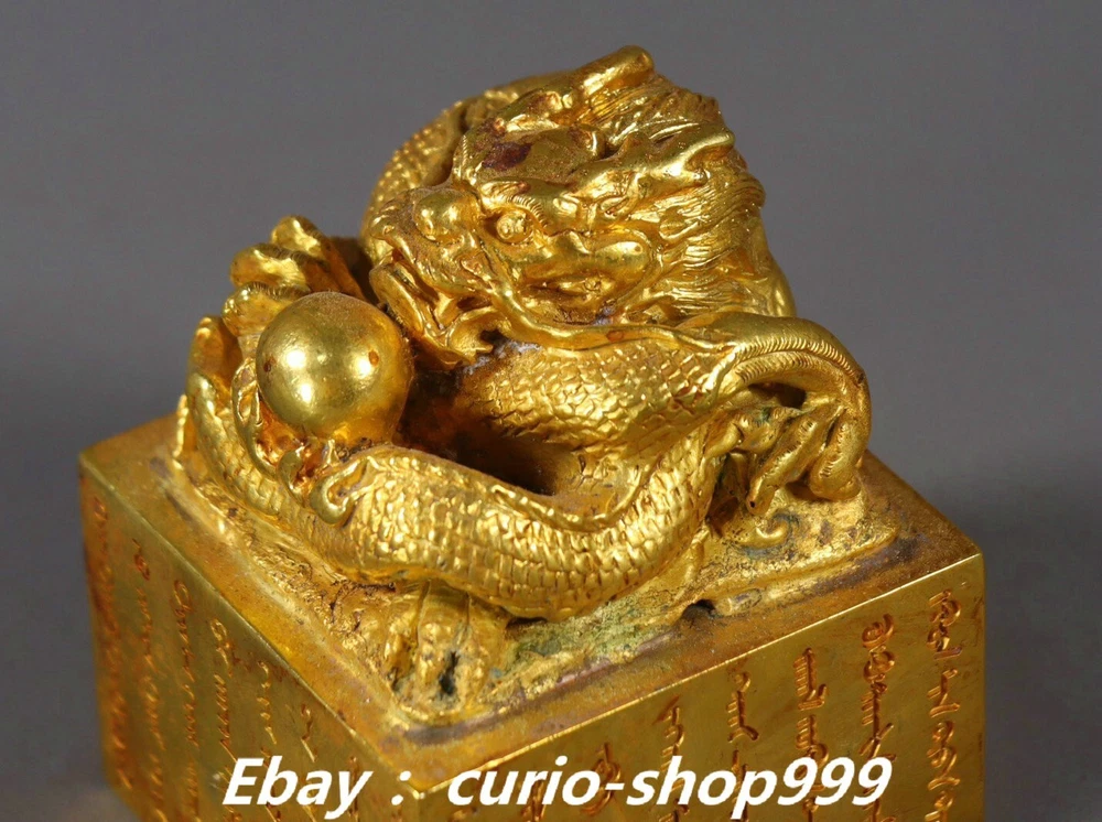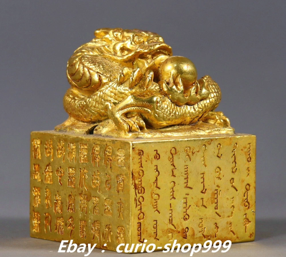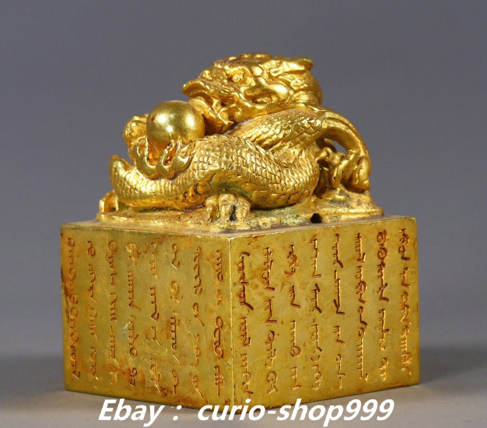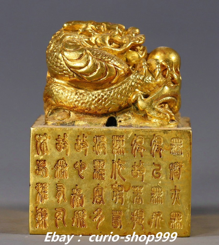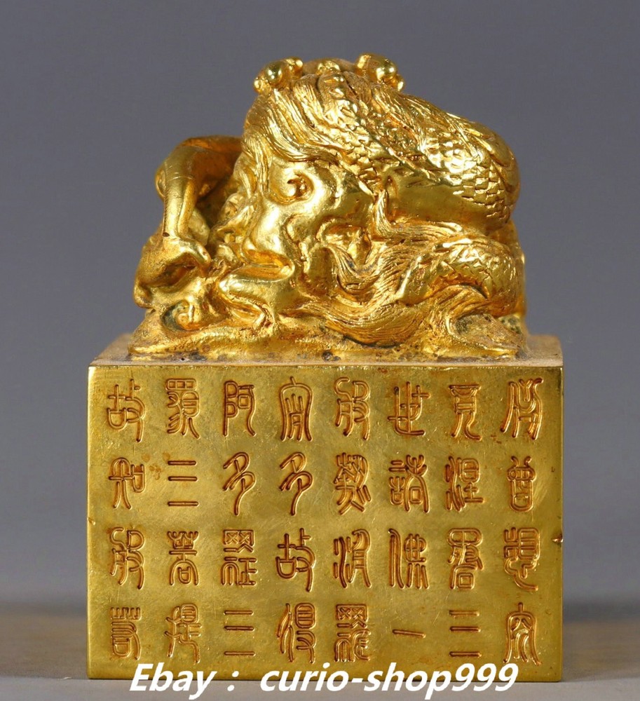 **** Welcome to our antique & Collectable Shop : Porcelain**** Description: Here is 3"Old Dynasty Copper Gold Inscription Dragon Loong Beast Pixiu Seal Stamp Signet . It is in good condition, and was created by skilled craftsmen in traditional style with fine handcrafts.This is a great piece of valuable collection, a valuable personal alter or a very good present. the handwork is very fine with incredible detailling. Don't miss out this chance to get it.Wish you good luck! . Material : Copper Gold Size : Heigh t 3.1 Long 2.3 B readth 2.3 (inch) Condition Perfect Condition. Perfect, with no scratches, flaws or repairs. Weight: 2.7 KG----included the weight of packing materials Shipping cost to all over the world countries in Free Honored Customers: We are selling the collectibles products and crafts in Beijing ,China since 1993 and collected them all over the world all the time . In our shop the bronze sculpture, animal, vase, urn, flowerpot,Incense Burner.Table chair sets. Militaria goods. buddha statues, Bodhisattva Statues, Buddhist Ritual Items etc is our speciality .Many of the items we sell come from our own personal collection and have been in our family for a very long time .My great-grandfather was the first in this family to start collecting art & antiques when he still lived in San Xi and Tibet around 1922 ,some of the paintings he once collected can now be seen in museums around the globe.We won't make money from t he shipping cost, if you dislike the item when you receive it,we can refund all of your money to you within thirty days. Please confidence for bidding . We recommend the combine shipping and offer you an big price discount if you order more items together ! 2024.10.03 四 号
