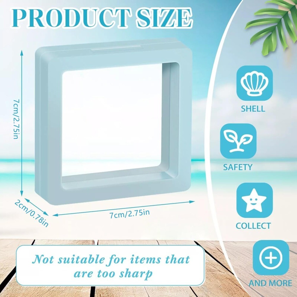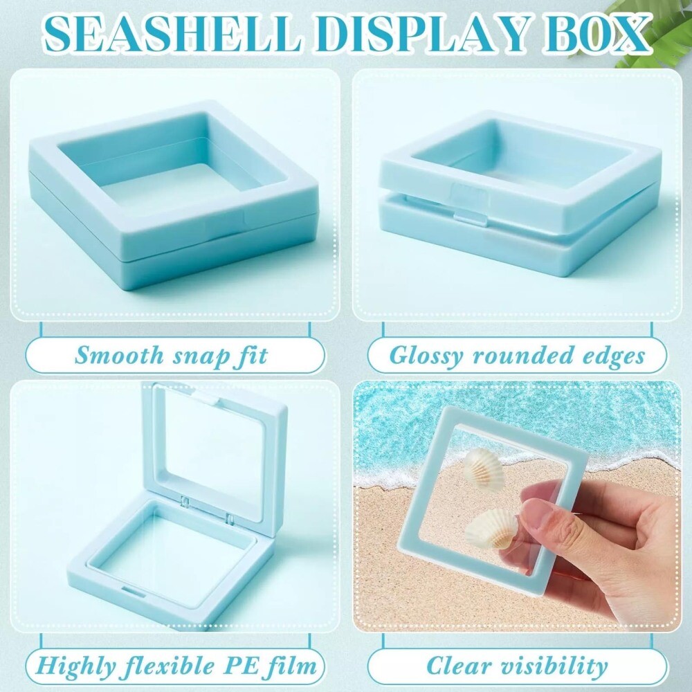 Features: Transparent Display: Showcase your seashell collection in this 3d floating display box, providing a stunning visual effect that enhances any space. Versatile Storage: This large size seashell storage box is ideal for organizing small craft items like crystals, nail art rhinestones, and more, keeping them neatly stored and easily accessible. Decorative Design: The decorative stackable small craft organizers feature a sleek and modern design, making them a stylish addition to any home display cabinet or showcase. Perfect Gift: These small craft organizers make a thoughtful birthday gift for friends and family who appreciate unique and practical storage solutions for their hobbies and collections. Compact and Functional: The 7*7*2cm seashell craft organizers offer a compact yet spacious storage solution, perfect for keeping your craft supplies organized and within reach. Specifications: Material: ABS Size: 7*7*2cm