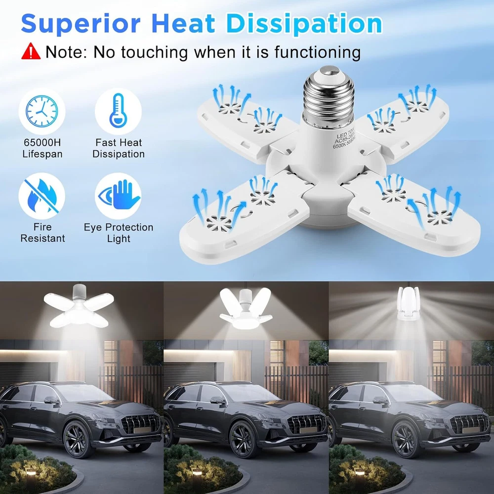3PCS E27 LED Garage Light Bulb Deformable Ceiling Fixture Lights Workshop Lamp FEATURE: Super Bright and Energy Saving--There are five light-emitting panels with high-quality 40 LED chips. "CRI >80", consumes only 28 watts, equivalent to a incandescent light bulb, saving up to 85% compared to traditional garage light bulbs. Easy TO Install -- No tools, no wires, easy to install. Simply screw the LED garage light into the base (E27) and it's ready to go (make sure there is power in the circuit before installing). Adjustable Deformation Design-- The LED ceiling light adopts a foldable design, the product is light and beautiful. Each light board can be rotated 90 degrees, 360 degrees without dead angle illumination, at the same time, our garage lights will not appear stroboscopic. Wide Application--LED Deformable lights are widely used in garages, barns, storage rooms, warehouses, basements, workshops, utility and recreation rooms, equipment rooms, large area lighting requirements, industrial workstations, work areas, carports, auto shops and workshop etc. Why Choose ZON? Purchase our products and you can get a replacement or return policy within 60 days due to product quality problems. We will focus on the buyer's user experience to ensure that our products can be used after the user's purchase Satisfaction. SPECIFICATION: Combined size: 9cm * 6.5cm * 6.5cm Unfolded size: 19cm * 19cm * 8cm Net weight 80g (can be merged and expanded) Material: PP Product color: White Luminous color: Cold white 6500k Lamp holder clip: E27 Luminous: around 900 Lamp bead model: 2835 Total number of LED beads: 40 (8 per leaf) Adjustable angle: 180 ° Applicable to: rooms, hotels, restaurants, gardens, garages, factories, shopping malls, schools, restaurants, garages, kitchens, workshops Input wide voltage: AC85-268V 50/60Hz Power: 28W Usage: Install the E27 lamp holder and use the control switch directly ITEM INCLUDED: 3 x Deformable Lamp Payment Return Warranty Shipping Contact us Payment 1. We accept payment via PayPal. Use PayPal at checkout to pay with credit or debit. 2. Immediate payment is required. Shipping will be arranged within 1 business day once payment is cleared. Return 1. We stand behind our items and offer 60 days warranty. All items are in new and working condition unless specified otherwise elsewhere in the description. 2. All Returns - defective or otherwise - MUST BE PREAUTHORIZED to guarantee refund or exchange. Please contact us to get an authorization and return address. 3. Buyer agrees to pay for the cost of re-shipment for undeliverable or wrong addresses. 4. Buyer is responsible for Return Postage as well as a 20% restocking fee if return/replacement is not a result of our mistake such as wrong item. 5. Replacement or Refund will be made upon receipt of the returned item. Please include tracking number so we can process ASAP. If you do not wish to wait for a replacement, please repurchase the item. 6. ALL REFUNDS will be processed via PayPal. Please double check via PayPal history and transaction for confirmation. PayPal will send it back to whatever you used to pay within 3-5 days. Warranty The warranty shall not apply to the following circumstances: a) Damage caused by undue ware&tear, misuse, improper installation or operation, neglect, accidents. b) Damage caused by natural disaters, flood, fire, lightning or pollution. c) If item was opened, any parts removed or repaired by any unauthorized person. Shipping FREE SAME BUSINESS DAY MONDAY- FRIDAY SHIPPING FROM USA. All orders and payments received before 4PM EST (1PM PST) will be shipped the same business day. All other orders within 1 business day. No shipping on Weekends or US Public Holidays. No responsibility for any custom duty Shipping information will be updated when available. Contact us We have always been trying to provide the best service and reliable products for every customer, however, accident may happen sometimes, please contact us to resolve any issue before leaving a negative feedback.