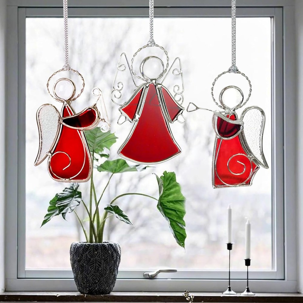 We often feel helpless and sad when we miss the deceased. We choose the Angel with the meaning of missing our loved ones. We hope that this Stained Glass Angel suncatcher bring the peace, love, and enduring connection of the love that never dies to you and your family, offering spiritual nourishment and hope to the elders. Those we love never leave; they are always with . Even if you can't see them or hear them, love and longing persist. Material: Stained Glass & iron Color: Red Style: Angel Size: 2.1" x 3.1" Occasion: Home Decor & Window Hanging,Christmas Tree Decoration Well packaged - With layers of foamed plastic wrap to prevent product damage. This suncatcher is a true stained-glass creation and not cheap painted glass. The soldering is precise and the finish on the foil is a uniform glossy brown. There were no rough spots on the soldering or the foi The colors are vibrant so it looks beautiful hanging in window or you could just use any hook, string, chain, etc. Very well made and catches the sun very well! Would make a very good gift. đăNice Cherish Giftă- Angel Stained-Glass Sun-Catcher Window Hanging ornament is a special way to cherish the memory of loved ones who have passed away.So the Angel sun catcher make a special gift for birthdays, Mother's Day, Christmas,sympathy gifts, memorial gifts, grief gifts, bereavement, or to comfort someone who is missing someone.When cardinals appear angels are near sun catchers đăReal Stained Glass NOT Acrylică- Handmade Angel suncatcher is real glass not acrylic as many suncatchers are.The colors are nice and bright and the details are pretty! Angel suncatcher with the sun shining through it, making the whole window look colorful, It is a good choice for home decoration,Christmas tree, whether hanging on the window or the wall. đăEasy to Hangă- Each stained glass Angel suncatcher ornament comes with a metal ring, you can use a string to hang it anywhere you want to decorate. It's a hassle-way to add a beautiful touch to any space.Wherever the place is - Christmas Tree, glass doors, kitchen window, upstairs windows, circle-head window, front window, bedroom window, kitchen door or as welcome signs on hanger stands. đăUnique Handmade Designă- Each red Angel sun catcher is crafted with high-quality stained glass and hand-cut pieces soldered together the tin foil method. The fired stained glass texture is different for each suncatcher, making it a -of-a-kind piece. đăPerfect SizeăEach Angel ornament size is 3.1âx2.1â, it is suitable to be hung on the window and walls,Christmas Tree or any place you want there to be amazing. It's hanging on door and looks so pretty with the sun shining through it.Please confirm the size is what you need before purchasing. Note: If you receive the product without stick hook, please the seller to it.