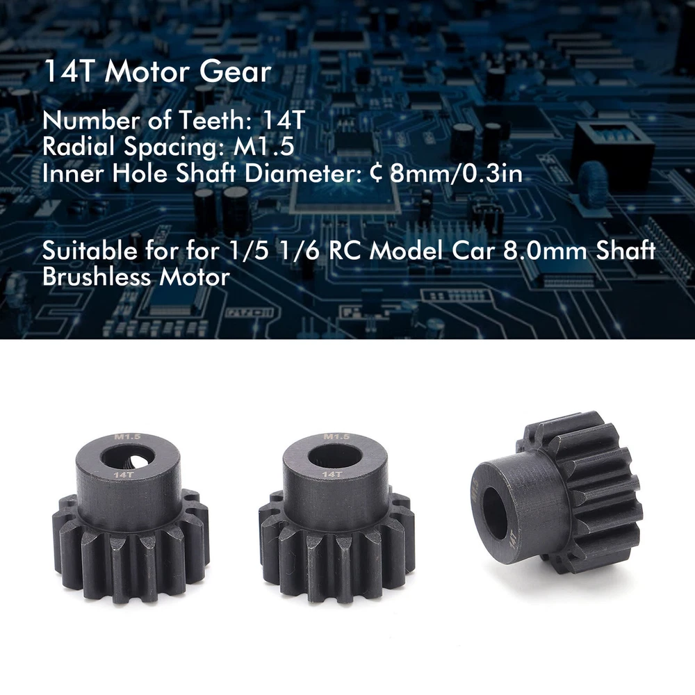 3PCS M1.5 8mm 14T Car Motor Steel Gear Pinion Motor Gear for 1/5 1/6 RC Car