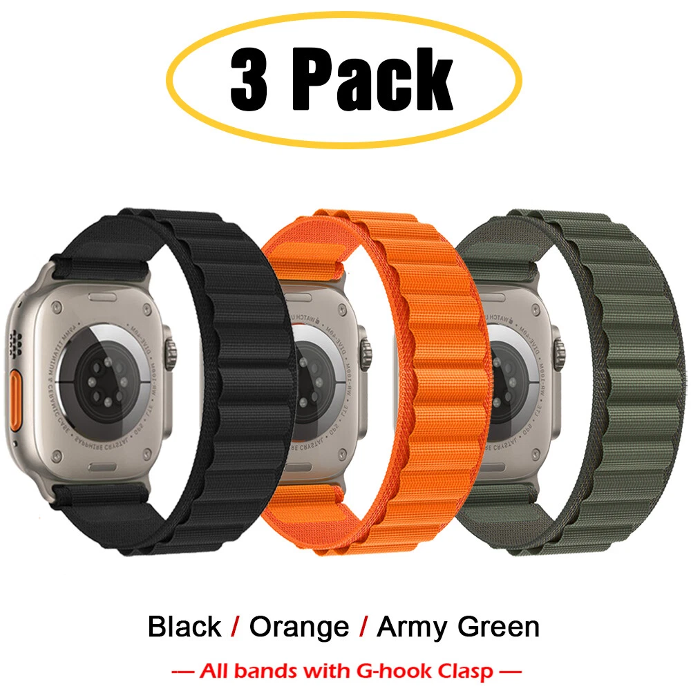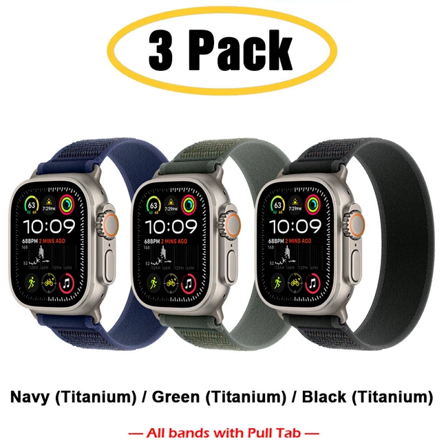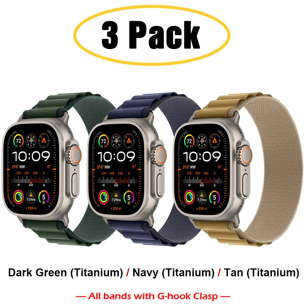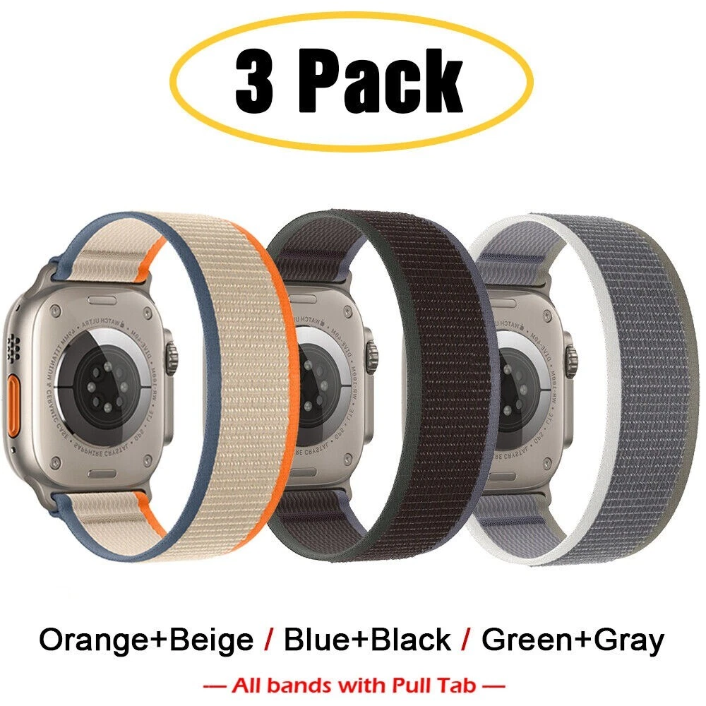 3PCS 2024 New Alpine/Trail Loop Nylon Sport Band for iWatch 40/42/46/49mm Ultra2 Features: 【High Quality Material 】 Made of high-performance nylon material. band is washable, durable, comfy to wear, skin-friendly and lightweight. 【Easy to Install】 Both ends of this Alpine Loop Band are equipped with watch lugs, which can be locked on the watch interface accurately and safely, effectively preventing the strap from falling off, and one-click installation and removal; Alpine Loop Nylon Band uses corrosion-resistant titanium G-shaped buckle, easy to put on and take off, adjustable length design, perfect fit. 【For All Scenes】 Suitable for many scenes, especially suitable for sports such as hike, run, outdoor Activities. Making the ultimate sports watch for athletes of all kinds required a unique approach. That’s why specialized bands for outdoor adventures, endurance training, and water sports are as meticulously crafted as the watch itself. 【For Wrist Size】 Suitable for 5.51"-8.26"(140mm-210mm) wrist Compatible With: > For Apple Watch Ultra / Ultra 2 > For Apple Watch Series 10 / Series 9 / Series 8 / Series 7 / Series 6 / Series 5 / Series 4 / Series 3 / Series 2 / Series 1 / > For Apple Watch Nike > For Apple Watch Hermes > For Apple Watch SE Package Includes: 1x 3PCS Alpine/Trail Loop Sport Band ONLY!!! (PS: The Apple Watch is Not Included) Note: You can customize the colors, please add a note on your order or send us message for what colors you want, for example: Black x1, Orange x1, Army Green x1. Then we'll send the colors as you requested.