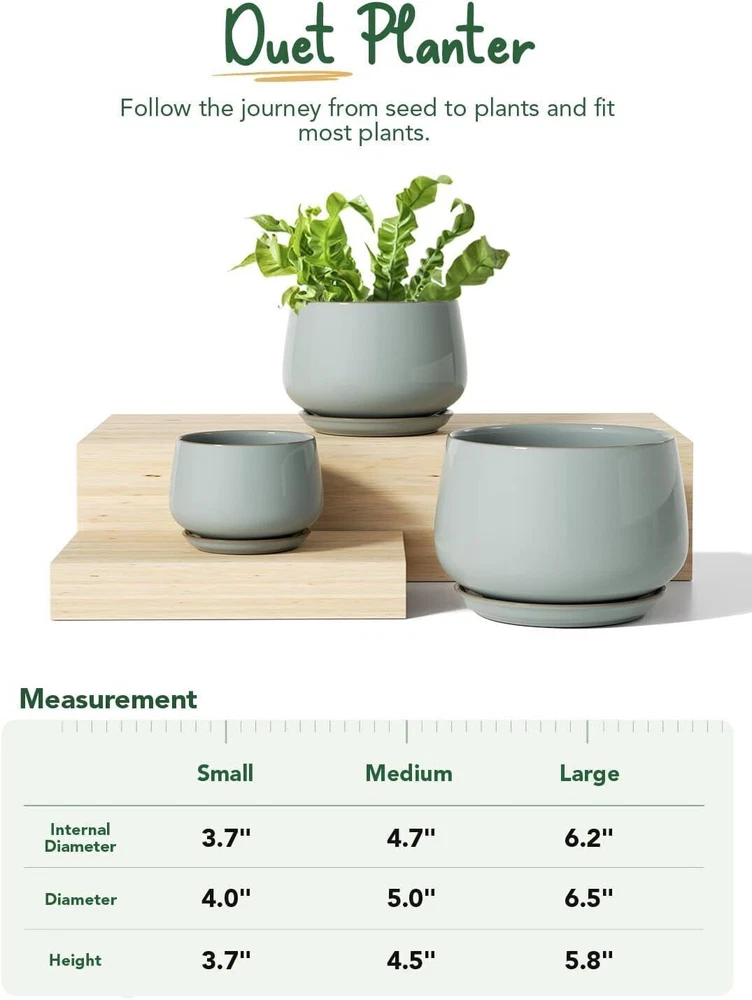 Rechargeable 4V Cordless Screwdriver with Circuit Sensor Technology 45pcs Bits 43.88 USD Free shipping Cordless Electric Scissors 4V Rechargeable Cardboard Box Cutter Fabric Scissor 43.88 USD Free shipping 15 Piece Combination Wrench Set SAE 12 Point CR-V Steel W/ Rolling Pouch New 43.88 USD Free shipping 14-Piece Premium Combination Wrench Set SAE 1/4"-15/16" 12-Point With Tool Roll 39.48 USD Free shipping 48PC Cr-V Steel Ratcheting Wrench Set SAE 1/4-3/4"72 Teeth Ratchet Wrench 6-18mm 54.88 USD Free shipping 8 Pc 12 Pt Reversible Ratcheting Combination Wrench Set Metric Precision Tools 61.58 USD Free shipping 16 Piece Jumbo Combination Wrench Set SAE 1/4"-1-1/4" Raised Panel Construction 60.37 USD Free shipping 4pc Adjustable Wrench Set 6-inch 8"10" 12" 3-in-1 Spanner w/Box End/Hex Function 43.88 USD Free shipping 5 Piece Alloy Steel Double Offset Box End Wrench Set Mechanical Tools 52.68 USD Free shipping 3-pieces Spud Wrench, 10-inch 12-inch 16-inch Adjustable Wrench Set with Kitbag 47.18 USD Free shipping 9PCS Anti-Slip Ratcheting Combination Wrench Set SAE 72-Teeth Ratchet Wrenches 50.48 USD Free shipping 12-Piece Metric Flex-Head Ratcheting Wrench Set 72-Tooth Chrome Vanadium Storage 43.98 USD Free shipping About this item 【Bringing the Garden to You with Three Plant Pots】 No garden? No problem! This set offers three plant pots of different sizes, ideal for your tabletop, bedroom, or even a spacious backyard or patio. Sizes: Large - 6.5" diameter, 5.8" height. Medium - 5" diameter, 4.5" height. Small (for succulents) - 4" diameter, 3.74" height. 【Enhanced Plant Care with Drainage Features】 This planter pot is thoughtfully designed with drainage holes and saucers, ensuring proper water drainage to prevent over-watering. The included drainage net effectively filters excess water from the soil, fostering a healthy environment for your plants, especially bonsai succulents. Rest easy knowing that both a drip pan and drainage net are included. (*Plant not included.) 【Optimal Root Environment】 Our ceramic pots feature unglazed interiors that absorb moisture, creating ideal conditions for plant roots. This promotes healthy growth by facilitating efficient water exchange and air circulation. If you tend to overwater, these indoor planters with unglazed clay and drainage holes will be your plant's best friend. 【Elegantly Modern Design】 These classic ceramic indoor planters come with a matching tray and boast a sleek modern design in various stylish color options. Their curved silhouette adds a timeless and sophisticated touch to both indoor and outdoor spaces. 【Durable Premium Ceramic】 Crafted from high-quality ceramic, these planters can endure strong sun and harsh winters without fading, cracking, peeling, or frosting. Whether for indoor or outdoor use, they provide a stylish and weather-resistant home for your plants. With easy-care finishes, these planters are as durable as they are stylish, making them an excellent gift choice for family and friends. 12PC Metric Flex-Head Ratcheting Wrench Set 8-19 mm Ratchet Combination Wrenches 40.21 USD 42.78 USD Free shipping 6% off Dehydrated and Freeze-Dried Fruit Variety Pail Emergency Supply Survival Food 97.3 USD 103.51 USD Free shipping 6% off Heavy Duty 5 Tier Plastic Storage Shelf Home Garage Shelving Unit Shelves Rack 50.25 USD 53.46 USD Free shipping 6% off 1 Person Emergency Food Supply Kit 42 Serving Storage Quick Meal Survival Bucket 34.13 USD 36.31 USD Free shipping 6% off 24 In Smart TV HD 720P Resolution LED Display 60 Hz Refresh Rate W/Stand Class 93.81 USD 99.8 USD Free shipping 6% off No Tools 5-Shelf Storage Bookcase Bookshelf Storage Display Rack Book Shelving 32.65 USD 34.73 USD Free shipping 6% off Ergonomic Office Chair Video Gaming Chairs Massage PU Leather Computer Chair 157.47 USD Free shipping 15,000 BTU Propane LP Single Tank Top Portable Heater CSA Swivel Burner Head NEW 48.62 USD 51.72 USD Free shipping 6% off Portable Baby Simple Highchair Folding High Chair Baby Chair w/Adjustable Tray 50.63 USD 53.86 USD Free shipping 6% off 8 Sheet Microcut Shredder w/Pullout Basket for Home Office Credit Card Shredder 61.08 USD 64.98 USD Free shipping 6% off 4 Pack Aluminum Corner Clamp for Woodworking 90 Degree Clamp Right Angle Clamp 44.35 USD 47.18 USD Free shipping 6% off 7-Piece King Size Reversible Blue Stripe Bed In a Bag Comforter Set with Sheets 50.61 USD 53.84 USD Free shipping 6% off
