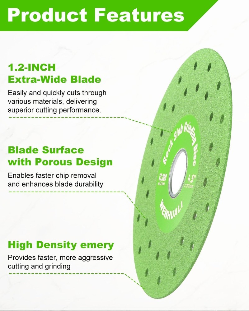 100% Money Back Guarantee if you are not satisfied with your purchase! ____________________ Description: 4.5" Diamond Rock Slab Grinding Disc Set, 3 Pcs Multi-Pore Flat Cutting Blades, Ultra-Wide 1.2" for Tile, Glass, Marble, Granite, Angle Grinder & Diamond Saw Blade ● Efficient Cutting – The 1.2-inch extra-wide blade ensures a wider cutting area for faster, more efficient cuts. The multi-pore design provide rapid heat dissipation, effective chip removal, and precision cuts. ● Strong durability – Crafted with brazing technology and high-density diamond particles, the rock slab grinding disc delivers superior heat resistance and vibration reduction for long-lasting performance. ● Versatile Compatibility – Fits 4-4.5" angle grinders, stone saws, circular saws, and dry saw cutters. The tile cutting disc adapts to both dry and wet grinding, offering flexibility for various project needs. ● Wide Range of Uses – This disco para cortar ceramica is designed to meet the diverse needs of your home improvement projects. It is the go-to solution for achieving professional-quality results, ensuring clean, accurate cuts, and a flawless finish. ● Safety Reminder – Wear protective gear when using the porcelain tile blade. Do not exceed 13,200 RPM to ensure safe operation and maintain optimal performance for long-lasting use. 100% Money Back Guarantee: We offer 30 Day Money Back Guarantee from the day you purchased if you’re not satisfied with your product. If you have any questions about our products, please contact us as soon as possible. Customer satisfaction is our absolute priority. Shipping: We are always working hard to ensure your package arrives as soon as possible. Please understand that some factors like weather, high postal traffic, and the performance of shipping companies are outside of our control. We offer free shipping to the lower 48 states and ship within 3 business days of payment, usually sooner. We do not accept P.O. Boxes. Please provide a physical address. You will be notified via eBay messages as soon as your items ship. Delivery: We will ship out the item in 2-3 working day after receiving the payment. Usually the delivery takes 2-5 business days. If you don't receive the items after 10 days, please feel free to contact us. You will get a replacement or a full refund. Please DO NOT open a return request or leave negative feedback without asking for help. Returns (Get Free Return Label): We offer a 30-Day Return Policy on defective/wrong items or items which you are not completely satisfied with. You have the option for a full-refund or an exchange of the item. No need to buy eBay return label. Contact us via eBay messages and get free return label. Returned items must be in all of the original packaging and include all of the original accessories or items that came with it. The item and package should be in original condition. Contact Us: Any queries or issues incurred, please feel free to contact us via eBay message, we will get back to you within 24 hours. Please DO NOT open a return request or leave negative feedback without asking for help. Feedback: Your feedback is very important to us. After you get your package and you are satisfied with our service, please leave us positive feedback. We are highly appreciated for your POSITIVE feedback and 5 stars. Enjoy shopping.