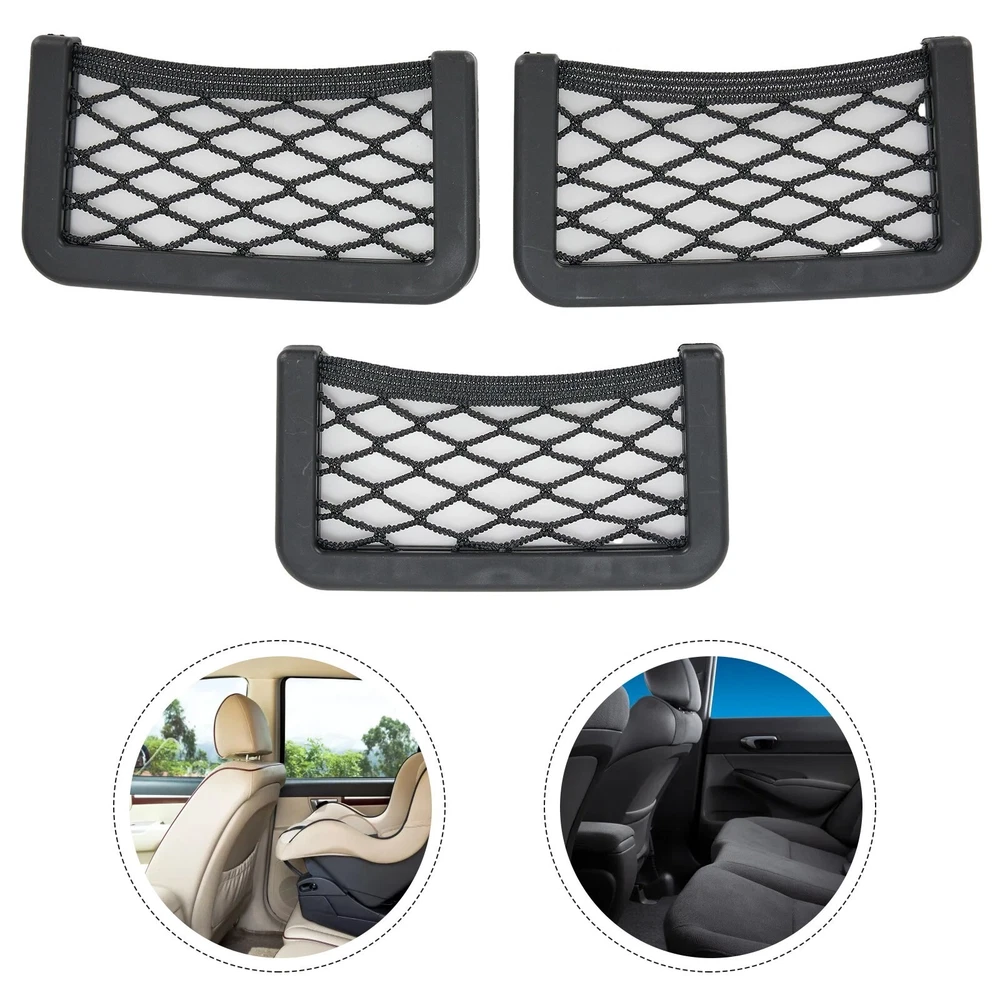 3PCS-Universal Car Seat Side Back Storage Net Bag Phone Holder Pocket-Organizer