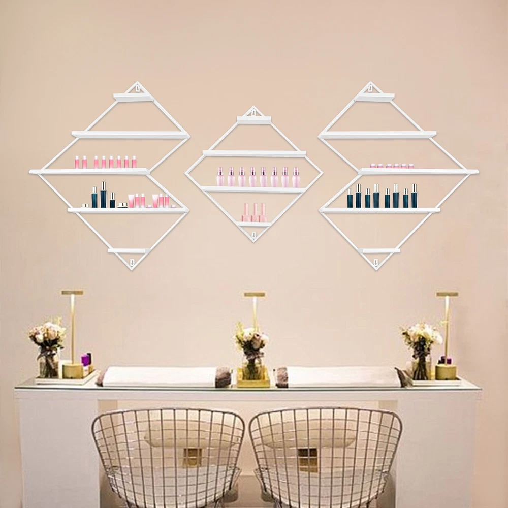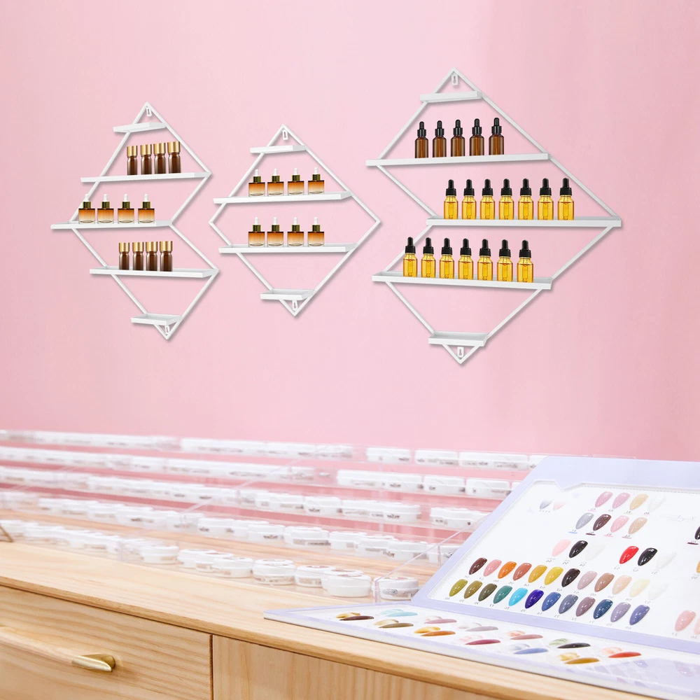 3PCs White Wall Nail Polish Storage Racks Diamond-Shaped Polish Display Rack Description Take a look at our nail polish display rack! The set includes three racks. It adopts a multi-tier structure, scientific distribution, and wall-mounted design, which can not only make full use of wall space but also facilitate the display of a variety of nail polish colors and textures. It is both practical and decorative, making the nail enhancement process more pleasant and the space more orderly and beautiful. Key Features Build to Last: It is made of high-quality cast iron molded in one piece with an eco-friendly high-temperature baking paint process, colorless and odorless, with excellent corrosion resistance, water resistance and rust resistance, which can ensure long-term use. Unique Design: With its diamond shape and classic white color, the overall style is simple and generous, instantly lighting up the nail art space and creating a pleasant nail art atmosphere. Stable Support: Thanks to its sturdy construction, screw mounting, and durable materials, the overall effective weight capacity is up to 22.05 pounds, allowing you to place your nail polish or cosmetics(not included) with confidence. Multi-tier Structure: It makes your nail polish neatly displayed and visible so that you can find the style you want quickly. Each tier(width: 3.15in) can hold two rows of nail polish, which can meet your storage needs, and you do not need to worry about a messy table. 3 PCS in One: The whole set contains 3 products (two small racks and a big one), which are enough to meet your needs at a very affordable price. You can order more for larger needs. Their layout can be adjusted according to needs to adapt to different space sizes and personal preferences, achieving personalized display. Easy to Clean: Thanks to its simple structure, smooth surface, and open design, you can easily clean it with a cloth. Simple Installation: With complete accessories, a simple structure, and mounting hooks, it can be easily installed on the wall, saving time and effort. Ideal Gift: Its beautiful appearance and powerful storage function make it an ideal holiday gift. You can give it to your friends, family, and other nail salon owners. Customer Service: We aim to provide quality products and services. If you have any problems, please feel free to contact us. We will reply and solve the problem for you as soon as possible. Details Thoughtful Baffle: Each tier is designed with a 0.59-inch high baffle to prevent items from slipping and tipping. Smooth Surface: The painted surface is very smooth, giving you a comfortable hand feeling. Application It is suitable for displaying nail polish, nail polish glue, nail stickers, and other nail products. It is suitable for nail salons, cosmetics retail stores, beauty salons, department stores, spas, shops, and other commercial places, and can also be placed at home as a self-storage tool. It can also be used to accommodate kinds of items like cosmetic bottles, perfume, lipstick, eyeglasses, photo frames, etc. Specification Material: Iron Process: Eco-friendly High-temperature Baking Paint Color: White Style: Modern Shape: Diamond Number of Pieces: 3 Mount Type: Wall-mounted Assembly Required: No Height of Each Tier: 15cm/5.9in (Each) Baffle Height: 1.5cm/0.59in Width of Each Layer: 8cm/3.15in Overall Load Capacity: 10kg/22.05lbs Each Big Display Rack Size(H*W): 78*62cm/30.71*24.41in Small Display Rack Size(H*W): 56.5*56.5cm/22.24*22.24in Package Size: 60*50*10cm/23.62*19.69*3.94in Net Weight: 4kg/8.82lbs Gross Weight: 4.5kg/9.92lbs Package Included 3* Nail Polish Display Racks All Accessories for Installation Note Please confirm the size and color before purchasing. Please note that our product does not include nail polish, perfume, or other items shown in the pictures. Please allow the slight color difference caused by the shooting light and 1-3cm error due to manual measurement, and make sure you do not mind before you order. Payment Delivery details Terms of sales About us Contact us Payment We accept ebay payment 。 Fees such as import duties, taxes are not included in the item price or shipping costs. These charges are the buyer's responsibility. Delivery details Shipping: 2-9 working days to: USA Terms of sales We maintain high standards of excellence and strive for hundred percent customer satisfaction. Feedback is very important to us. We hope that you contact us immediately before you give neutral or negative feedback, so that we can address your concerns. It is impossible to address issues if we do not know about them! About us Your satis faction is our ultimate goal. We work hard to earn your trust and future business. Our certified technicians have tested each item before shipping. The unit comes with 1 year limited warranty on all manufacturing defects. a) If you receive a defective item, you may return it or ask for a discount. Please contact us within 14 days after you receive the package. b) What you returned must be intact and in its original packaging as re? u. Customer is responsible for shipping costs of the returned item. c) We will cover the cost of shipping back t with the shipping rate indicated in the registration page. We will send you a new unit or refund the full payment you paid. Thank you. Contact us Business Hour Business Hour: Monday To Friday: 8:30 AM to 5:00 PM (Beijing China time) Due to time zones, our reply to your questions may not be immediately. But within above working time, we will reply your email within 24 hours. If it's non-workdays, please kindly be patient and wait till Monday. Please contact us with ebay message. Please feel free to contact us if you have any questions. Monday To Friday: 8:30 AM to 5:00 PM (Beijing China time) Due to time zones, our reply to your questions may not be immediately. But within above working time, we will reply your email within 24 hours. If it's non-workdays, please kindly be patient and wait till Monday. Pleas