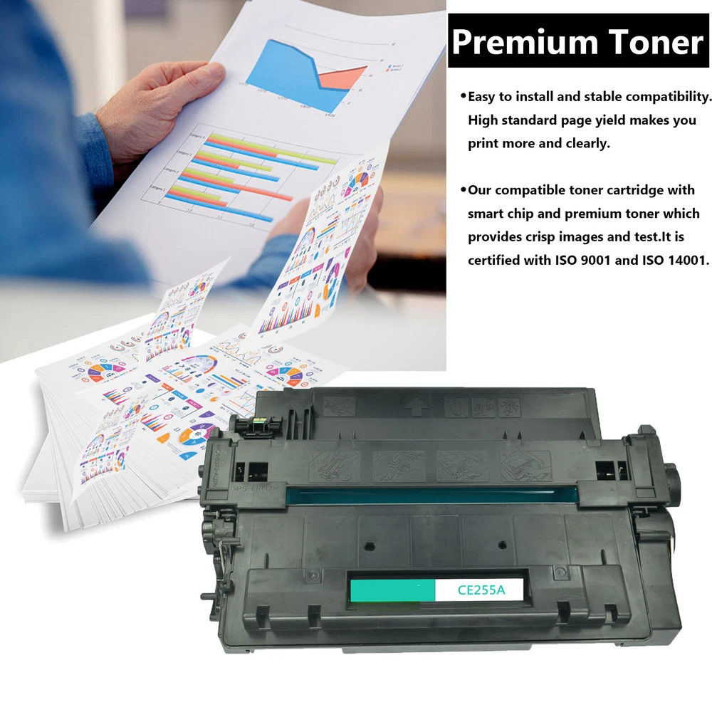 Condition:new It is certified with ISO 9001 and ISO 14001 Item:Brand New Premium Compatible For Hp CE255A Toner Cartridge Model:CE255A Shelf Life:2 Years Printed Pages:6,000 Pages at 5% Coverage Compatible printer list: For HP Printer LaserJet P3010 LaserJet P3015 LaserJet P3015d LaserJet P3015dn LaserJet P3015n LaserJet P3015x LaserJet P3016 HP LaserJet Enterprise LaserJet Enterprise 500 MFP M525dn LaserJet Enterprise 500 MFP M525f LaserJet Enterprise flow MFP M525c 3PK Hi-Yield CE255A 55A Toner Cartridge For HPLaserJet P3015dn P3010 MFP M525dn Model CE255A Color Black Page Yield 6,000 pages at 5% Coverage (4A Paper) Warranty 1 Year Condition Brand New ( It is certified with ISO 9001 and ISO 14001 ) Compatible for Printers Listed Below: HP LaserJet P3010 HP LaserJet P3015 HP LaserJet P3015d HP LaserJet P3015dn HP LaserJet P3015n HP LaserJet P3015x HP LaserJet P3016 HP LaserJet Enterprise 500 MFP M525dn HP LaserJet Enterprise 500 MFP M525f HP LaserJet Enterprise flow MFP M525c Fast and Safe Shipping Reliability on the Move, Safety in Transportation. Print Effects Clear / Sharp / Vivid At Your Service Anytime Available to help you anytime. Please contact us through eBay messages.