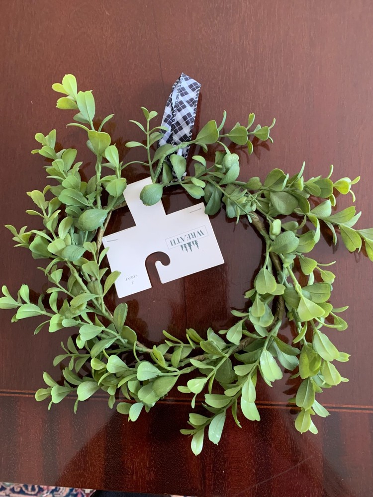 Artificial Green Mini Wreaths 6" diameter with black and white ribbon loop Set of three