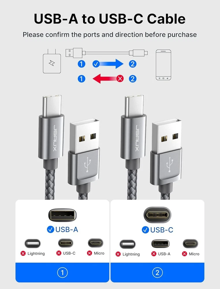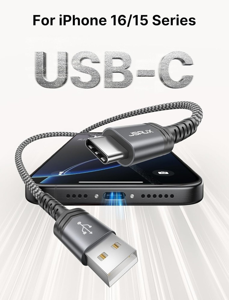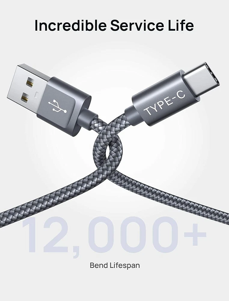 USB-A to USB-C Cable [3-Pack ], Fast Charging Cord, Type C Charge Cable Compatible with CarPlay/i 16/15/Plus/Pro/Samsung Galaxy S20/S10/S9/S8, Note 10/9, LG, PS5, USB C Charger Fast Charging : Fast Charge, Transfer speed can reach 40-60MB/S (480Mbps), USB C Cable accelerates the charging speed by delivering 5V/3A safe charging power, [25% faster] compared with other cables which provide 5V/ output Certified Safety & High Quality Assurance: This USB-C cable has electronic safety certifications that comply with appropriate standards, you have no need to worry about this cable quality at all. Upgraded 3D aluminum connector and exclusive laser welding technology, which can ensure the metal part won't break Enhanced Durability: Strong fiber, the most flexible, powerful and sturdy material, makes tensile force increased by 200%. Can bear 10000+ bending test. Premium Aluminum housing makes the cable more Long-lasting,nylon braided type c cable adds additional durability and tangle free Tips for Fast Charging: 1. Galaxy S20 /S20 Plus /S20 Ultra /Note 20/10 Plus Support fast charging, but requires a QC / AFC protocol charger with a 18W USB A port (The original charger is a PD fast charging with a 25 W USB C Port) 2. Pixel uses a "private charging protocol" which does not support fast-charging Compatibility List: We provide this 3-Pack Nylon Braided USB Type-C Cable. This Type C Cable can fast charge and sync well compatible with i 16/Plus/Pro/Pro Max/ i 15/PS5 wireless controller, Samsung Galaxy S20/S20+ Ultra S10 S10E S9 S8 Note 20 10 9 8, A51/A50/A12/A11, Moto Z/Z2, LG G5/G6/V20/V30 and other USB-C devices. The i 16 series can provide a maximum charging power of through a USB-A to USB-C Charge cable