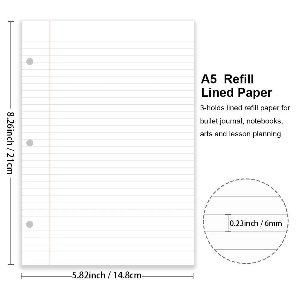 JUWA Portable Machine for Kids and Adults F211 White Suitable for Indoor Outdoor, Green LINED PAPER INSERTS - A5 planner insert paper, 5.8 x 8.2 Inch, 6mm ruled, 32 lines, double side clear black lines, each pack 100 sheets / 200 pages, total 3 packs 300 sheets /600 pages filler paper STANDARD 3 HOLE - Loose-leaf binder paper, easy insertion in all standard 3-ring binders. Not suitable for 6 hole binder PREMIUM PAPER - Mini binder refill inserts 100gsm smooth white paper for easy writing. Heavy-weight, acid-free paper that won't bleed through PEN TYPES FIT - Refills paper responds well to fountain pen, gel pen, roller pen, ballpoint pen, highlighter, pencil and etc IDEAL FOR- Loose-leaf refillable planner inserts works perfectly with binder notebook planner, ideal for bullet journaling, meeting record, class notes, travel diary, poem writing, doodles, project notebook for work, home or school
